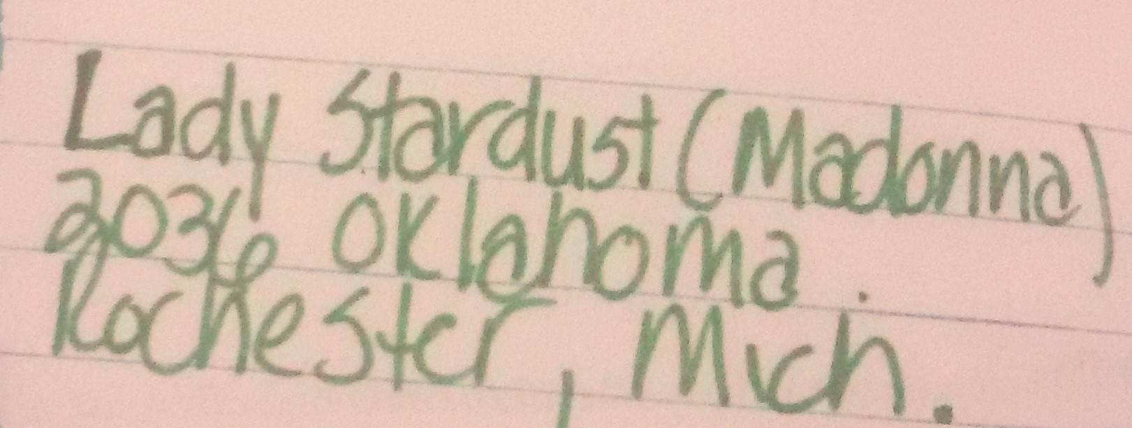 Sharon Maczko fue compañera y amiga de Madonna durante su época de colegio. Ambas se conocieron en la clase de Inglés del profesor Stenzel en 10° grado en el Rochester Adams High School. Se hicieron muy unidas tanto que Madonna regaló a Sharon una tarjeta en forma de conejito para el día de San Valentín con la inscripción manuscrita: «Para mi amorcito Sharon, besitos besitos, Feliz Día de San Valentín, con amor Madonna». En 1973, Madonna y Sharon se intercambiaron algunas cartas cuando Mazcko viajó a California de vacaciones. Madonna solía firmar con seudónimos tomados de canciones de David Bowie como «Lady Stardust». En 1975 Sharon Maczko se muda con su familia definitivamente a California y ambas amigas perdieron contacto.