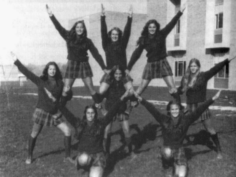 Quizás por su destreza corporal y afición a la danza, Madonna fue incluida en el grupo de porristas del equipo local, uno de los grupos de chicas más selectos y exclusivos de la escuela. Madonna alentó a su equipo durante mucho tiempo. Sin embargo ella siempre buscaba la manera de destacarse. Por ejemplo, en una oportunidad mientras alentaba a su equipo en un partido, se forma la típica pirámide en donde Madonna debía llegar a la cima, al hacerlo, se levanta la pollera y deja a todos los espectadores estupefactos. Llevaba puesta una bombacha color piel y desde la lejanía parecía que estaba desnuda. Estos hechos escandalizaban a todos y sobre todo a su padre con quien seguía manteniendo una relación pésima.