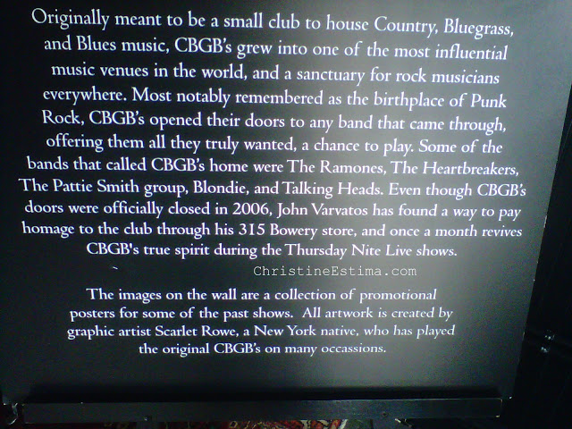 El club “CBGB” lleva ese nombre por la música que este local solía pasar “Country, Bluegrass y Blues”. El lugar creció como uno de los reductos musicales más famosos de su tiempo y un santuario para músicos de rock de todas partes del mundo. Notablemente recordado como el lugar donde nace el movimiento punk-rock, “CBGB’s” abría sus puertas a cualquier banda que quisiera tocar y le brindaba lo que ellos buscaban: un público. En este lugar Madonna y el grupo “The Breakfast Club” hicieron su gran debut a fines de 1979.