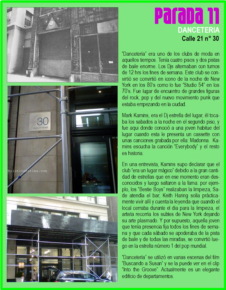 En este artículo, haremos un viaje en el tiempo y volveremos sobre los pasos de aquella joven, aun desconocida, pero con ansias de triunfo inimaginable. Recorrermos las calles, las casas, los clubs, los lugares en los que Madonna, habría recorrido en los primeros años de los 80’s. Desde su llegada a la ciudad en Times Square, hasta Sire Records la compañía que convirtió su sueño en realidad.