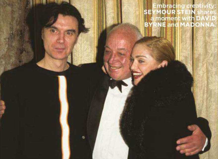 Una de las últimas apariciones públicas en donde pudimos ver a Madonna junto a Seymour Stein fue en enero de 1996 cuando Madonna acepta la introducción al «Rock and Roll Hall of Fame» en nombre de David Bowie. Aquí los vemos junto al cantante David Byrne.