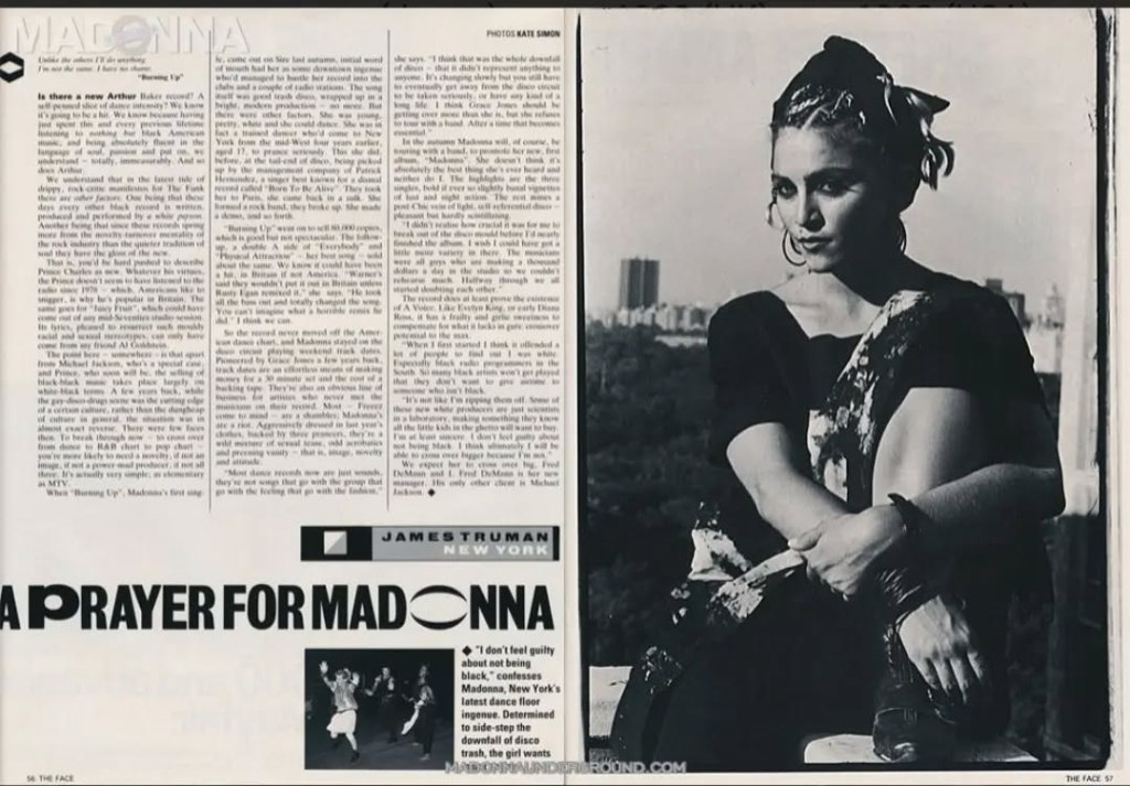 Una única foto de la sesión de Kate Simon fue incluída en la nota realizada por la revista «The Face» que fue publicada en septiembre de 1983. Años más tarde, más fotografías salieron a la luz y fueron incluidas en la tapa de la revista «New York» en 1991 en un especial sobre el surgimiento de Madonna y posteriormente en 2009, aparecen en la tapa de la revista «Lid» en un especial de doble portada.