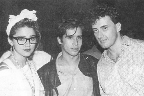 Arriba: Madonna, Jellybean y David Salidor (representante de «Jellybean») en el club nocturno «Area» de Nueva York.