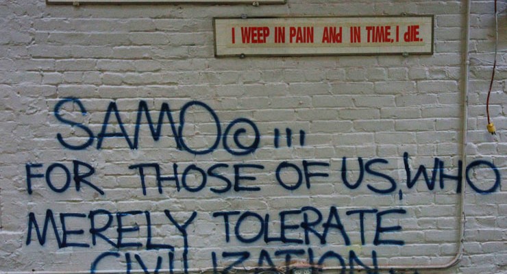 «Para mí, antes también pintaba, ya que no hay graffiti más puro que pintar que el tag, y eso hacía Samo, takear frases con su nombre por toda la ciudad, puro graffiti» (JM Basquiat)