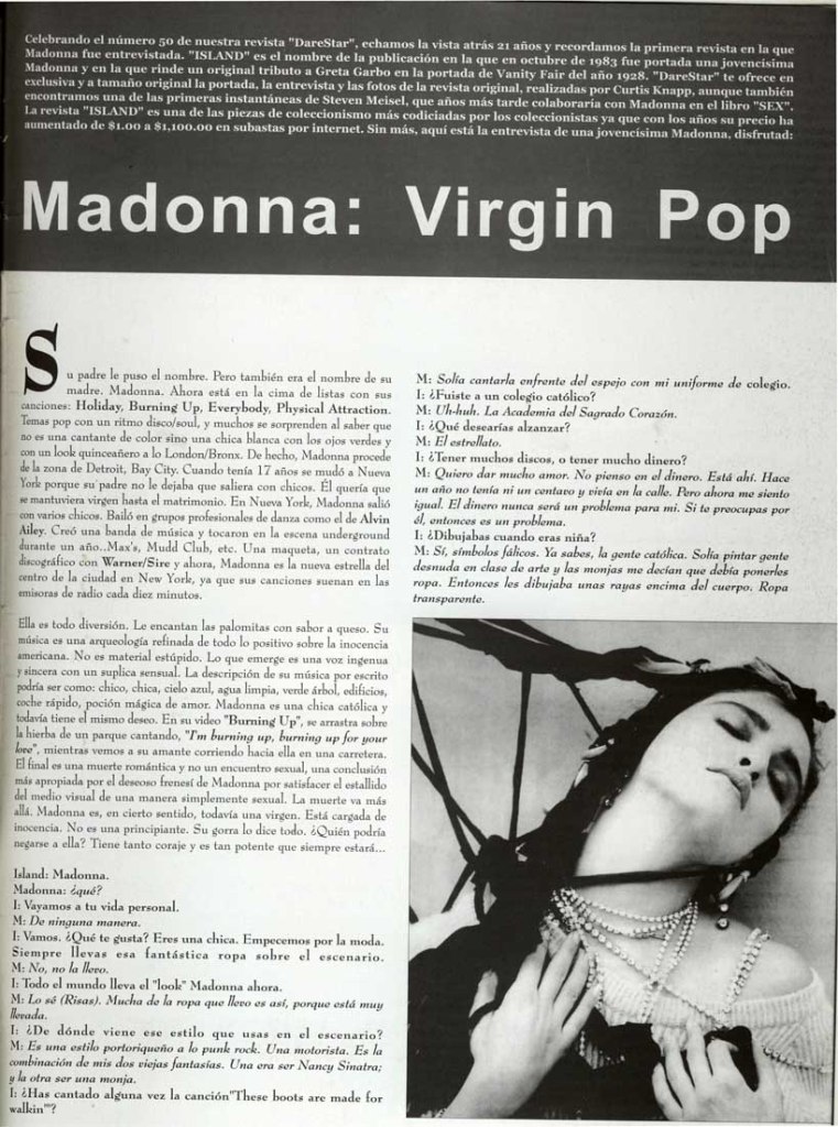 MADONNA Y SU PRIMERA PORTADA DE REVISTA PARA «ISLAND»