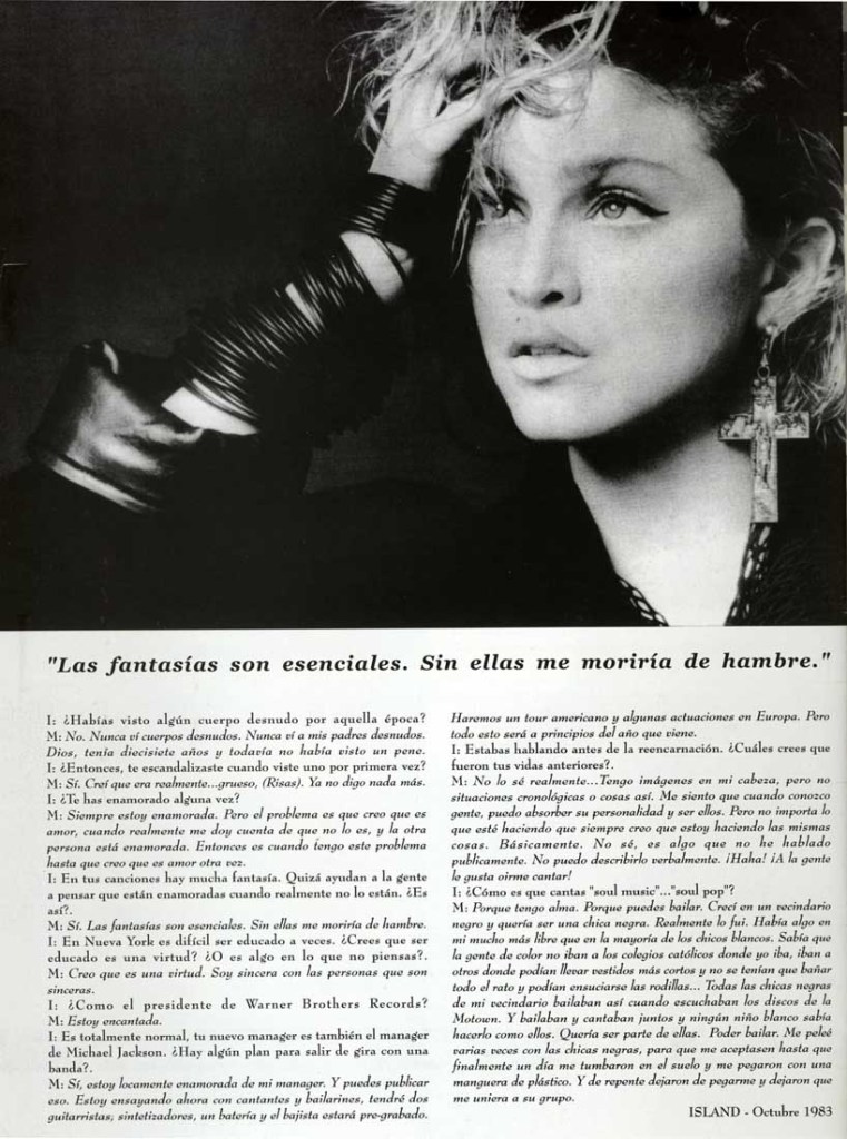 En Divina Madonna hemos traducido la entrevista completa para que puedas disfrutar a pleno aquel primer reportaje a una Madonna que estaba despuntando como una estrella mundial.