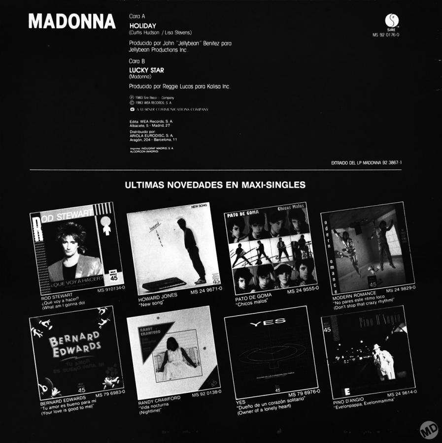 En la contraportada de esta edición, podemos ver la promoción de la edición del LP correspondiente: para aquellos discos lanzados en 1983 y 1984 se promocionaba el disco «Madonna» (1983) mientras que pada las ediciones posteriores, se comenzó a promocionar la re-edición del primer disco «The First Album» (1984).
