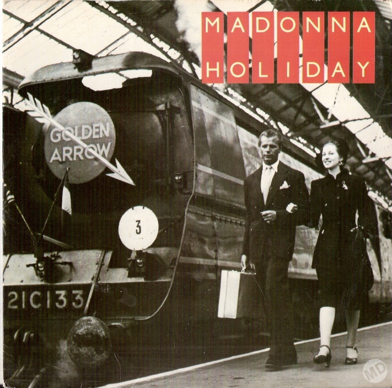 En USA el sencillo se lanzó de manera sólo promocional así que no tuvo portada. Sin embargo en Europa se lanzó con varios diseños según el país de origen. Analizaremos sólos las ediciones para UK y Alemania. En UK el single se lanzó en noviembre de 1983 con una imagen de una pareja en una estación de tren sin fotografía de Madonna. La imagen del tren Pullman «Golden Arrow» utilizada para la tapa del single británico de «Holiday» fue una imagen genérica que se tomó de un servicio de imágenes de archivo perteneciente a Mary Evans: “Una pareja camina del brazo en un andén, junto a la locomotora de lujo Golden Arrow, que unía la estación Victoria de Londres con Dover, donde los pasajeros tomaban el ferry a Calais, Francia”. El fotógrafo es desconocido, pero la imagen data de 1947.