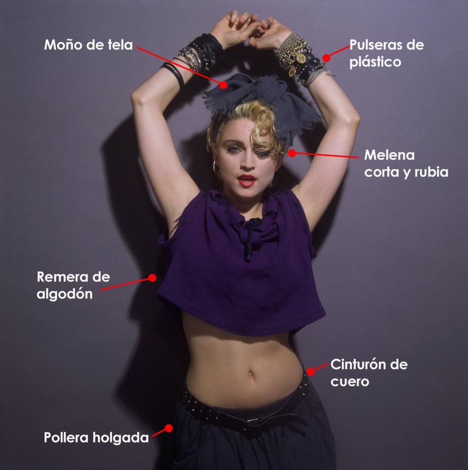 Si bien se da por sentado de que ella había impuesto la moda en los tempranos ochentas, la propia Madonna refiere que ella simplemente se vestía como podía y con lo que veía en las calles. Ropa superpuesta, prendas de segunda mano y accesorios baratos como pulseras, rosarios o crucifijos de plástico, eran los elementos que cualquier chica sin recursos del Lower East Side de New York, usaría para intentar estar a la moda. Sin embargo, Madonna, lo convirtió en su sello personal, en su impronta, y su estilo ecléctico y algo bizarrola fue marca que la hizo única. Ella se adueñaría de ese look y lo convertiría en propio.