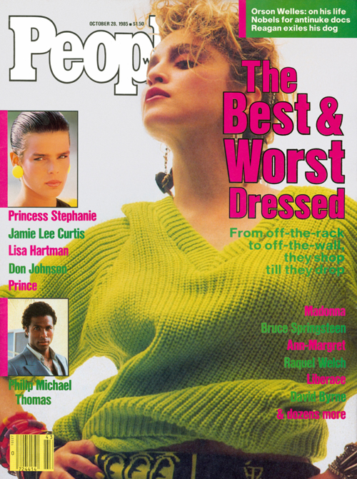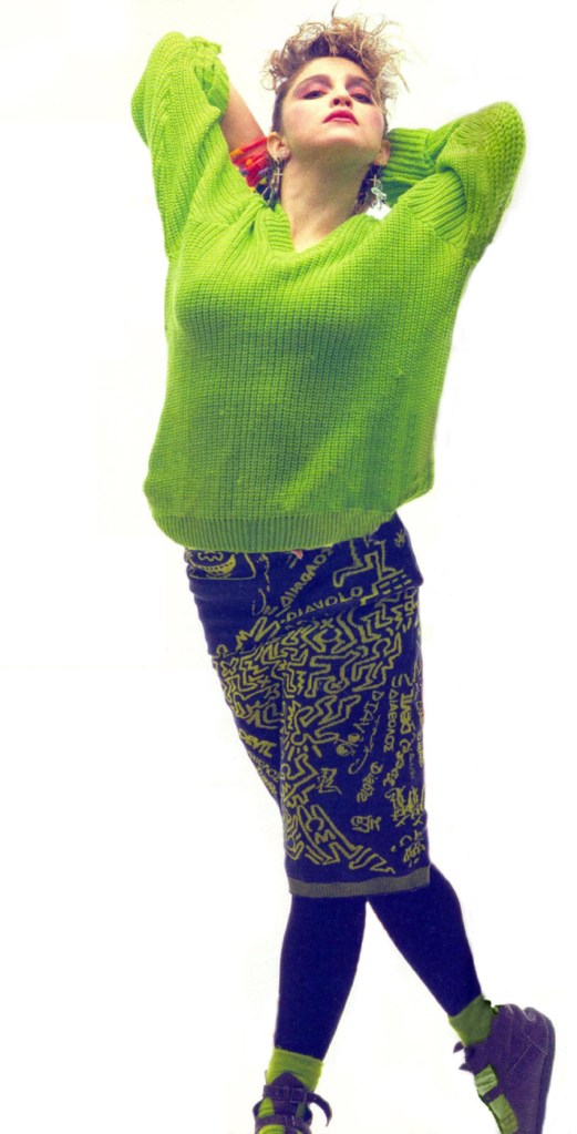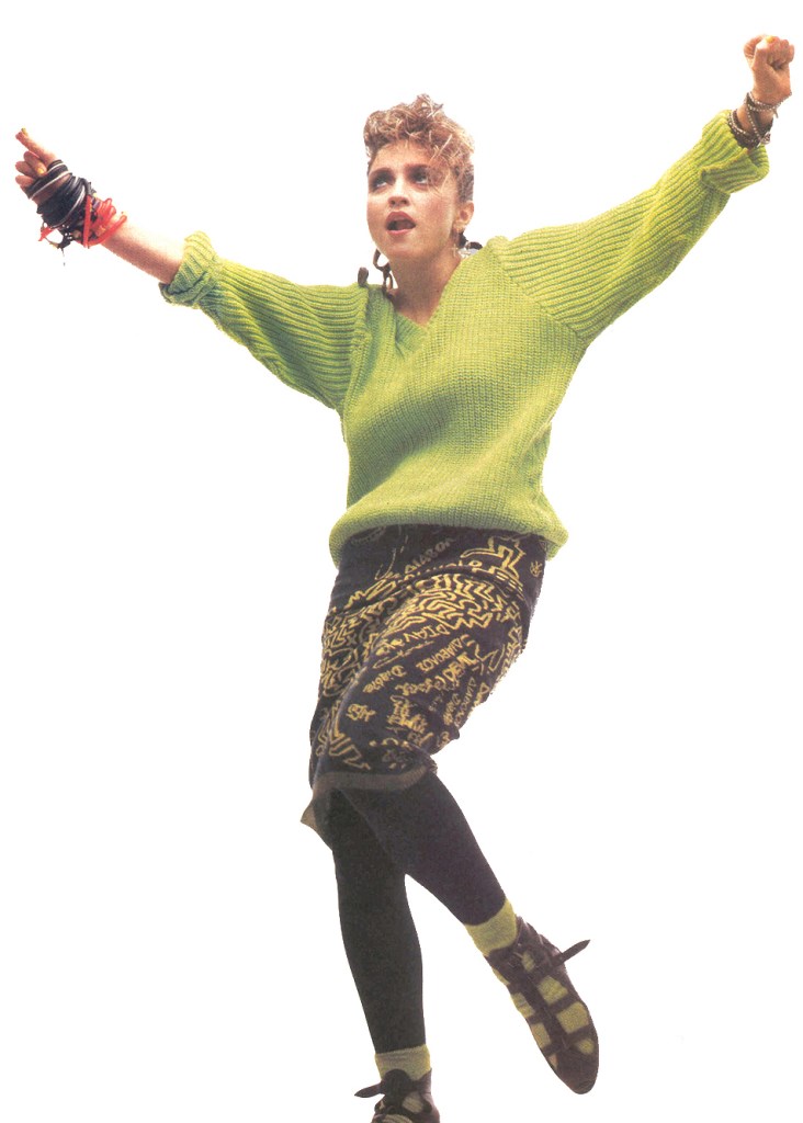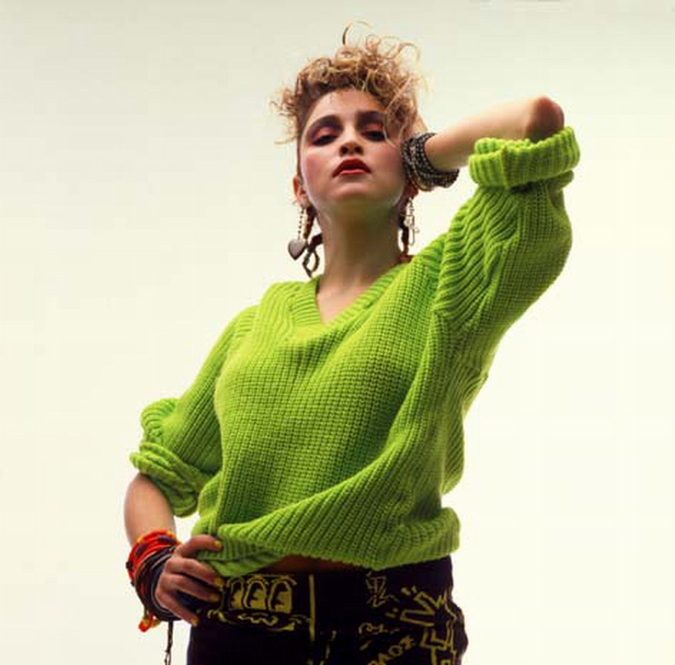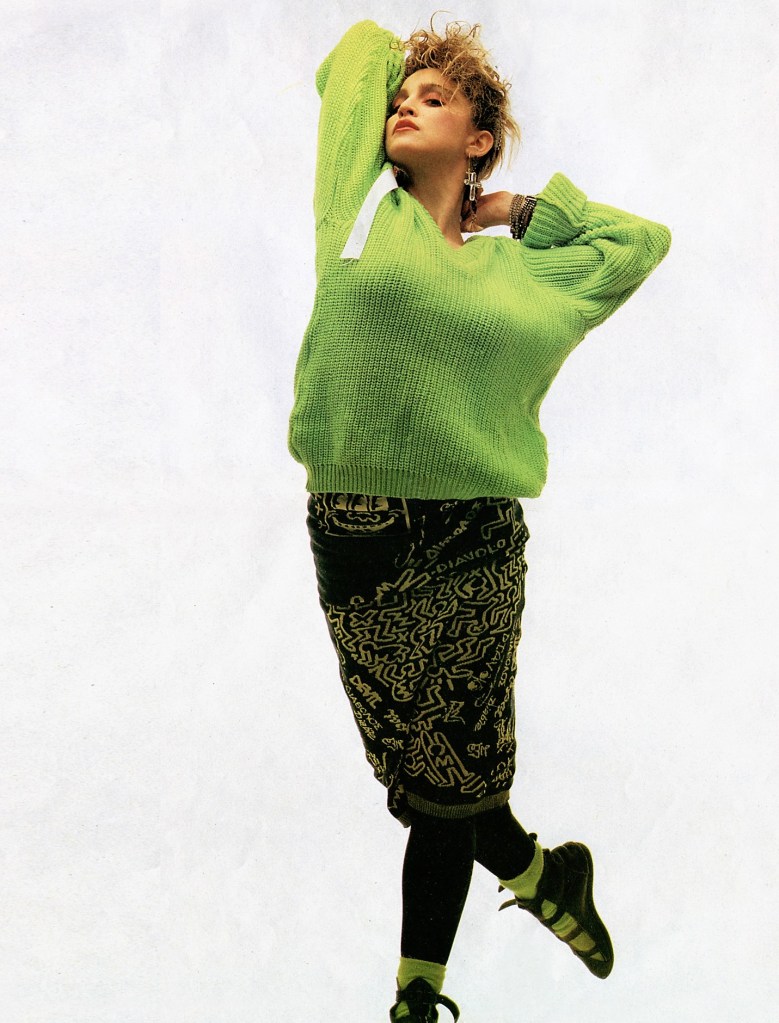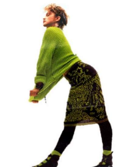 Madonna usó un sweater de lana verde lima y una falda tejida de la colección otoño-invierno 1983 «Witches» de Vivienne Westwood / Malcolm McLaren que mostraba un diseño de Keith Haring. Atuendo ya usado anteriormente para la sesión de Brian Aris.