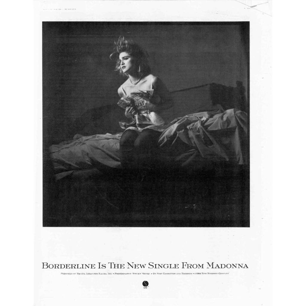 - Arriba el primer anuncio publicitario lanzado por Warner para el single «Borderline» en la revista «R&R» en el 24 de febrero de 1984. Lo curioso es que incluye una imagen de la sesión de fotos de Steven Meisel tomada a fines de 1983. Este anunció salió una única vez y luego fue modificado con otras fotografías promocionales. Tal vez, con la intención de guardar esta sesión de Meisel para promocionar el próximo proyecto musical de Madonna, el disco «Like a Virgin».