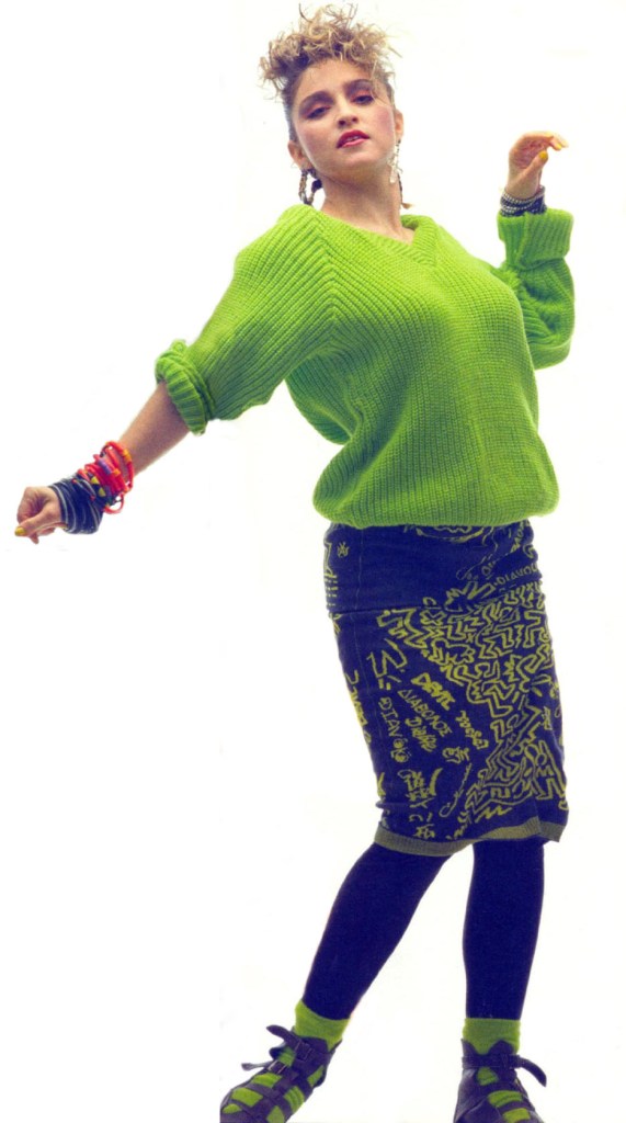 En el video Madonna fue asesorada en cuanto al vestuario por la diseñadora Maripol y el maquillaje como siempre estuvo a cargo de Debi Mazar. Madonna usó prendas de Viviane Westwood intervenidas por Keith Haring. En el mismo, vemos el típico estilo de Madonna de los 80s, con ropas superpuestas, jeans rotos, camisetas y medias de colores. Los infaltables accesorios de plástico como pulseras y rosarios daban el toque final a su look. Fue en este video, en que Madonna muestra por primera vez la hebilla “Boy Toy” de su cinturón que luego se haría famosa. El estilo que Madonna utilizó en este video, fue luego utilizado por diseñadores como Karl Lagerfeld y Christian Lacroix en la Semana de la Moda en París ese mismo año. Empecemos por sus sandalias. Durante 1983 y 1984, Madonna tenía unas sandalias de cuero color tabaco, taco bajo, similar a un estilo romano. Estas parecían ser su calzado fetiche del momento, ya que Madonna las usó en varias oportunidades y en varias sesiones de fotografías. Ella tenía la astucia de combinarlas con medias de diferentes colores de manera que parecía que el look siempre cambiaba. Estas sandalias las vemos en los set fotográficos de Eric Watson, Helmut Werb o Brian Aris como en algún programa de televisión. Fueron estas mismas sandalias que Madonna usó para las escenas de “barrio” del video “Borderline”.