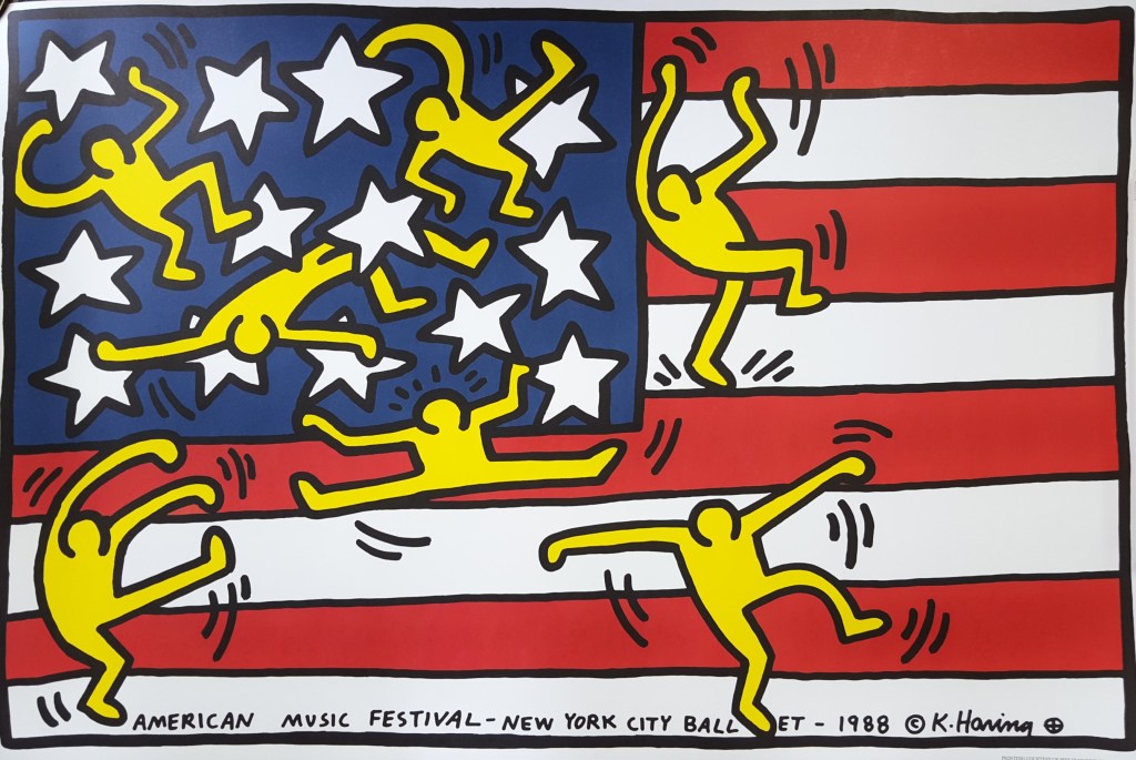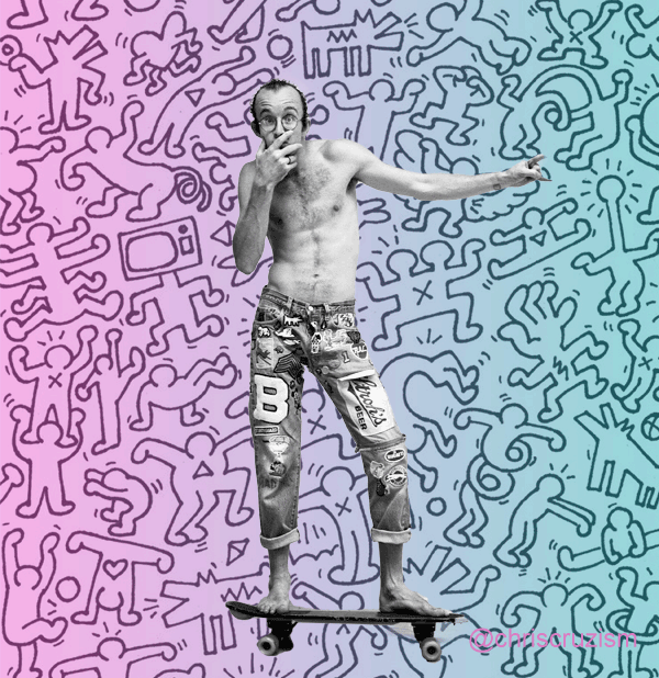 Keith Haring fue un joven e influyente artista de grafiti que ayudó a revolucionar el pop art en los 80s con sus diseños y dibujos que surgieron inicialemente en las paredes del subterráneo de New York. Sus imagenes simplistas contienen temas complejos y taboo (como el sexo o la guerra) de manera que pudieran ser inmediatamente accesible a cualquier espectador. Con su obra, Haring, logró derribar estereotipos y generar nuevas interpretaciones en relación al arte como un dispositivo de comunicación y de regulación social. Parte de la transformación cultural y social durante la década de los 80s, surge a partir de la nueva concepción que los artistas pop otorgan a su producción, como formas que se contraponen a las clásicas y permiten en cierta forma «democratizar» el arte.