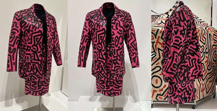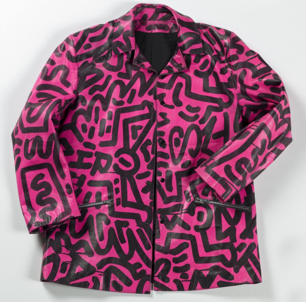 También se escogió un segundo conjunto de cuero rosa chicle con una falda a media pierna y chaqueta extragrande haciendo juego, obra del diseñador Hector Torres. Las prendas fueron intervenidas por Keith Haring cubiertas de grafitis negros con las iniciales «Haring» y «LAII» (Angel Ortiz). Torres había diseñado y confeccionado originalmente el traje (incluidos los pantalones) para la noche de inauguración de «Into 84», una exposición de la obra de Haring que abrió sus puertas en la galería Tony Shafrazi en diciembre de 1983.