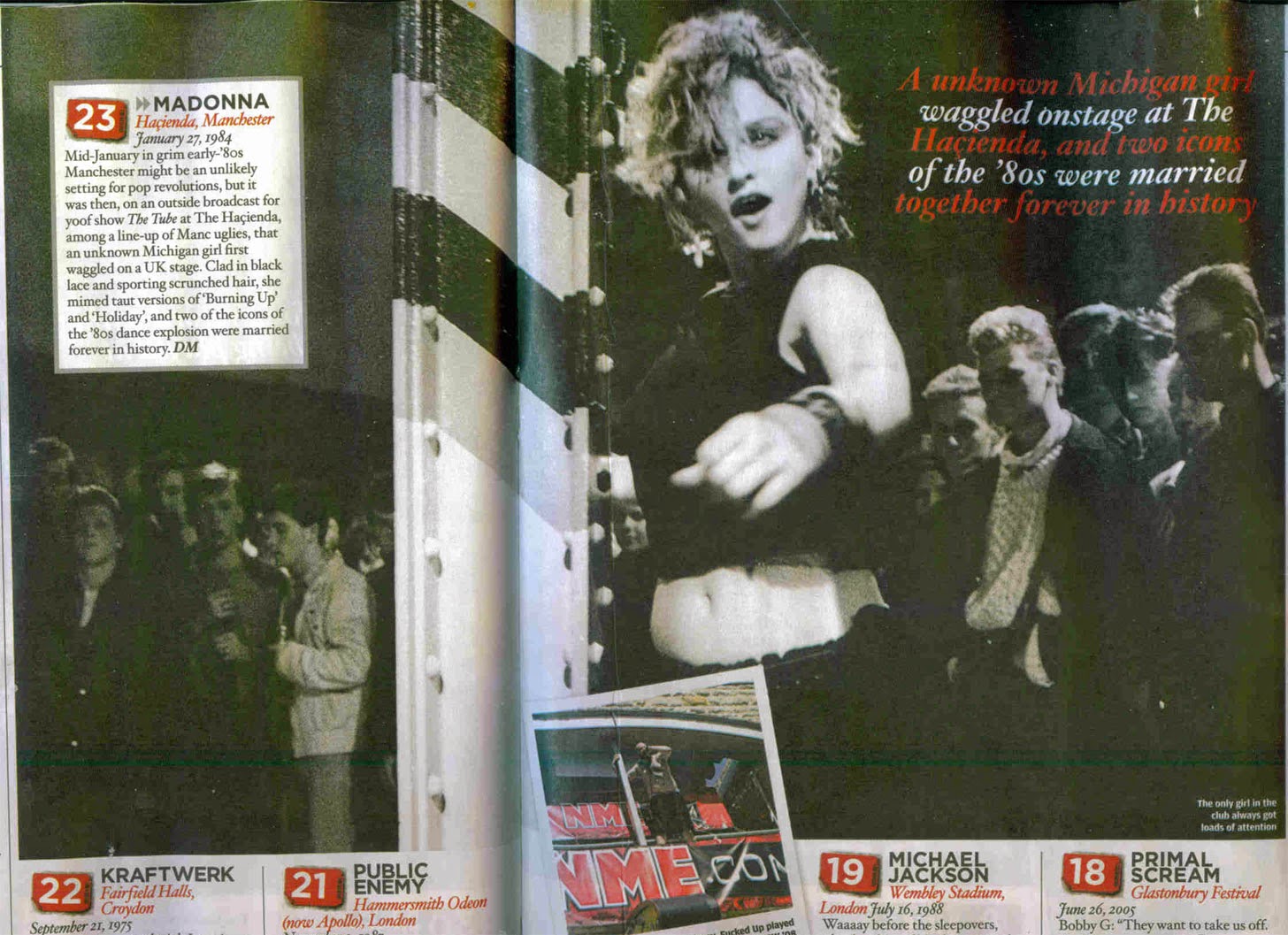 Para fines de enero, Madonna viaja a Manchester para actuar en el mítico club “The Hacienda” donde se grabaría su presentación para ser transmitida luego en uno de los programas musicales más importantes de la televisión inglesa: “The Tube”. En esta oportunidad, Madonna junto a Erica Belle y Christopher Ciccone, interpreta “Holiday” y “Burning up”.