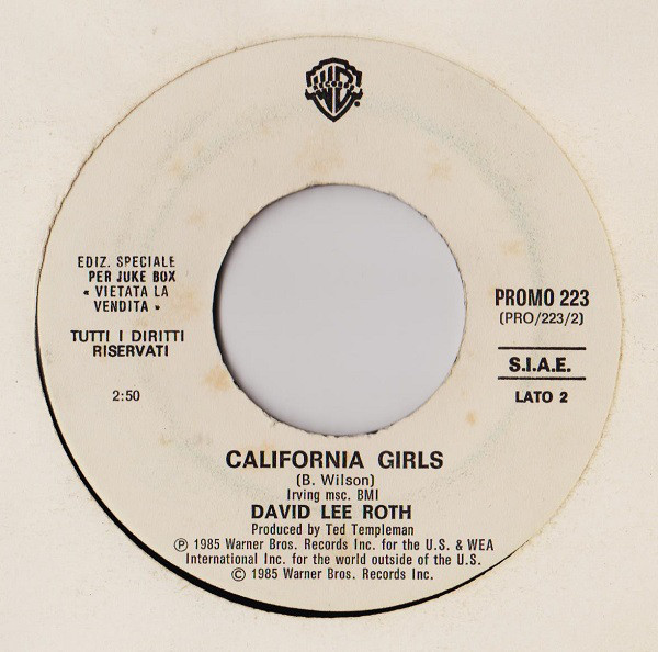 El cumpleaños de David Lee Roth no fue la única vez en que ambos artistas se relacionaron. En 1985, volvieron a juntarse, esta vez en un disco. Una rara edición promocional de la Warner Bros. Italia, decide lanzar un vinilo 7″ conteniendo temas de ambos cantantes. En la cara A se incluyó el hit «Material Girl» de Madonna, mientras que en la cara B, se incluía a «California Girls» de David Lee Roth.