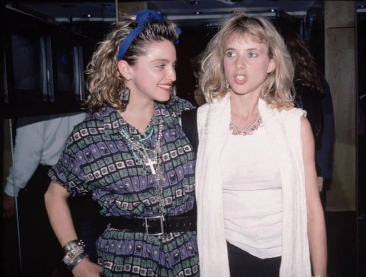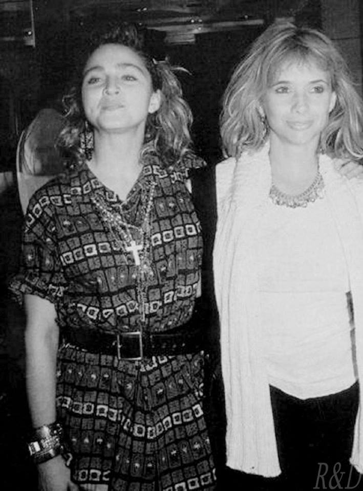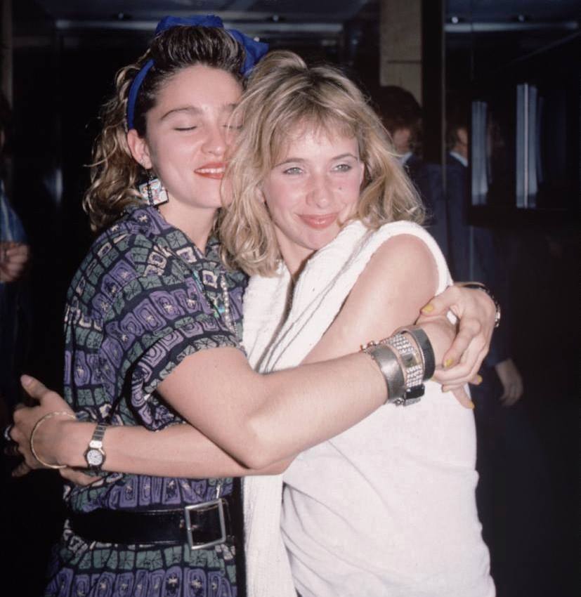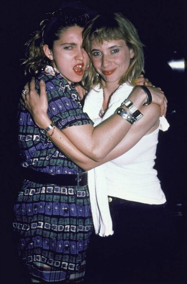 Para entonces, Madonna ya había comenzado a rodar el film «Desperately Seeking Susan», así que a la fiesta concurrió acompañada de su nueva compañera de elenco y protagonista Rosanna Arquette. En esta serie de fotos las vemos muy animadas y cariñosas posando alegremente para las fotos.