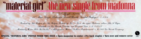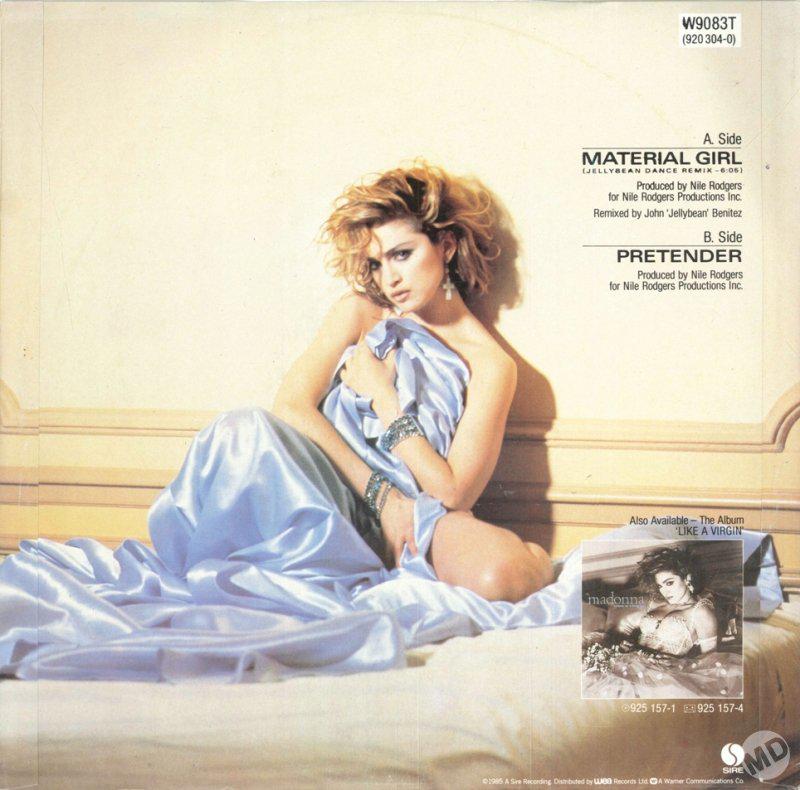 “No puedo desestimar completamente la canción y el video, porque ciertamente ambos fueron importantes en mi carrera. Pero me refiero a que los medios tomaron una frase y la malinterpretaron totalmente. No escribí esa canción, sabes, y el video se trata de una chica que rechaza los diamantes y el dinero. Pero Dios nos salvo de entender las ironías. Así que cuando tenga noventa años, aún seguiré siendo la ‘chica material’. Tal vez no sea tan malo, Lana Turner fue la ‘chica del sweater’ hasta el día que murió”. Madonnna