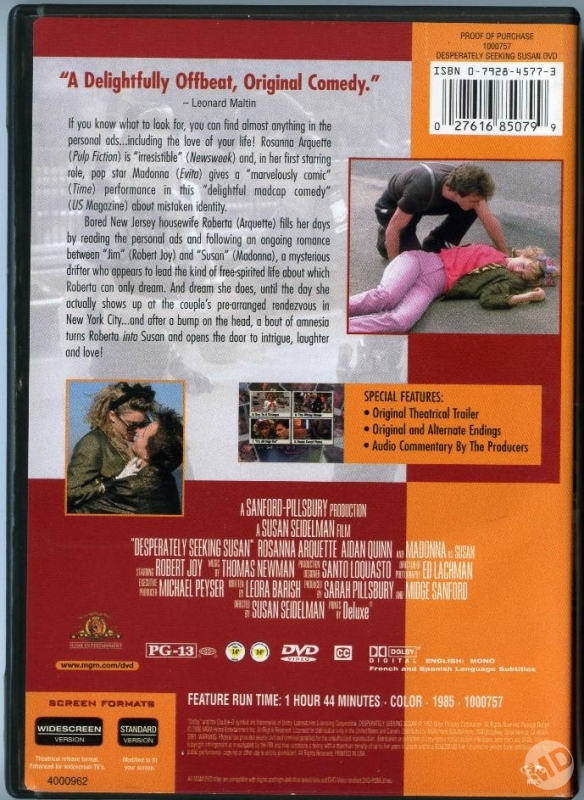 - Luego de estreno del film, además de accesorios, memorabiblia y vestuario como merchandising, se sumó una serie de tres muñecas de Madonna y su personaje de Susan con cuatro de los atuendos más significativos en el film. Eran totalmente oficiales y hoy son extremadamente raros de encontrar.