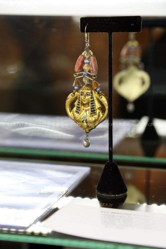 Otro accesorio que se puso a la venta en la subasta de la casa “Julien’s” del 2014, fue el par de pendientes estilo egipcio. Estos también tienen cierto protagonismo en el film ya que son los que motiva a los delincuentes a perseguir a Susan y a Roberta. Tienen el diseño de una mujer egipcia, están realizados en plástico imitación de turquesas y piedras preciosas. Son también obra de Santo Loquasto y se vendieron por USD 34.375.