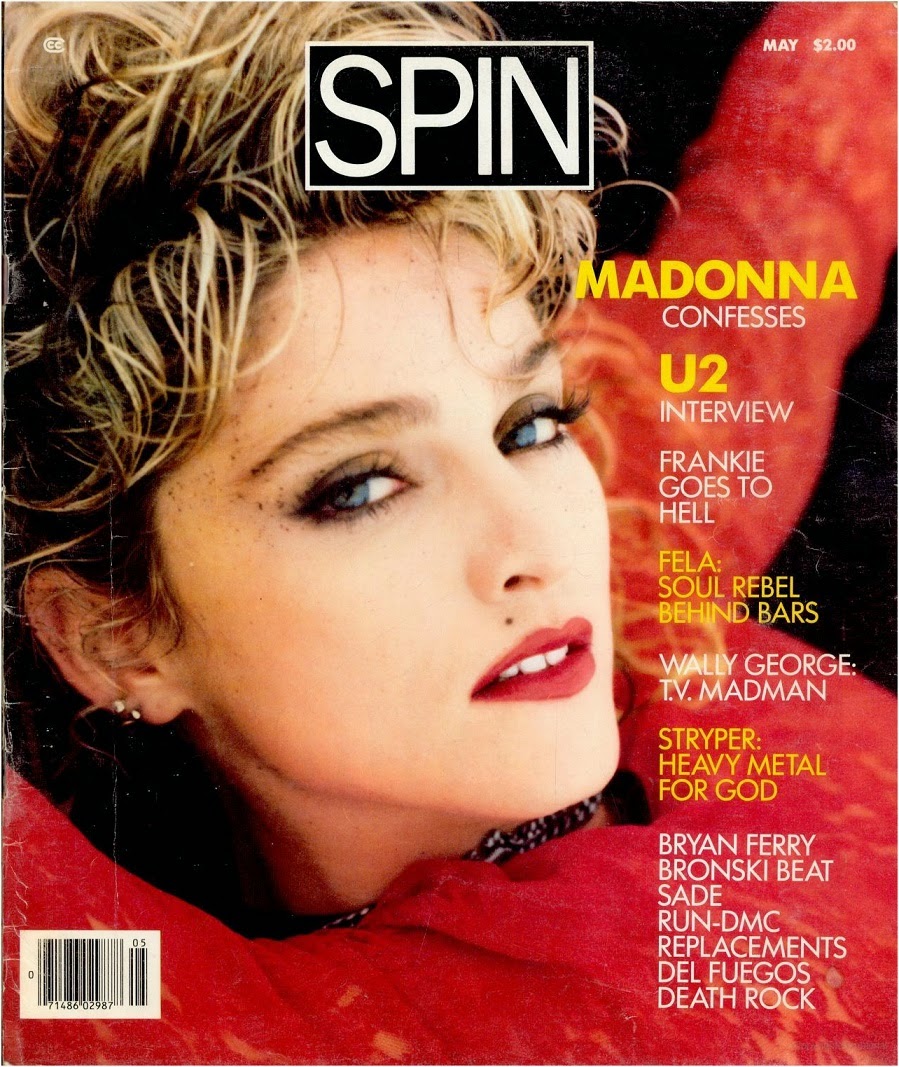 La revista «Spin» es muy conocida en el mundo entero por ser una de las publicaciones de música más importante de los Estados Unidos y por se considerada por muchos como el verdadero rival de la ya establecida «Rolling Stone». «Spin» fue creada en 1985 por Bob Guccione Jr. y se destacó por su ancha cubierta musical, que hacía énfasis en el «rock colegial» y en la aparición del hip-hop. La revista era ecléctica y audaz, y a veces caótica. La publicación se centró especialmente en artistas nuevos como R.E.M, Prince, The Eurythmics, The Beastie Boys o Talking Heads; de hecho, la figura de su número estreno fue ni más ni menos que Madonna, con una impresionante foto de Herb Ritts (de la sesión tomada en Hawaii). La publicación salió a la venta el 01 de Mayo de 1985 y a partir de entonces, Madonna fue entrevistada y estuvo varias veces en tu portada. Lamentablemente, esta revista no se encuentra más en circulación siendo su última publicación impresa en septiembre de 2012.
