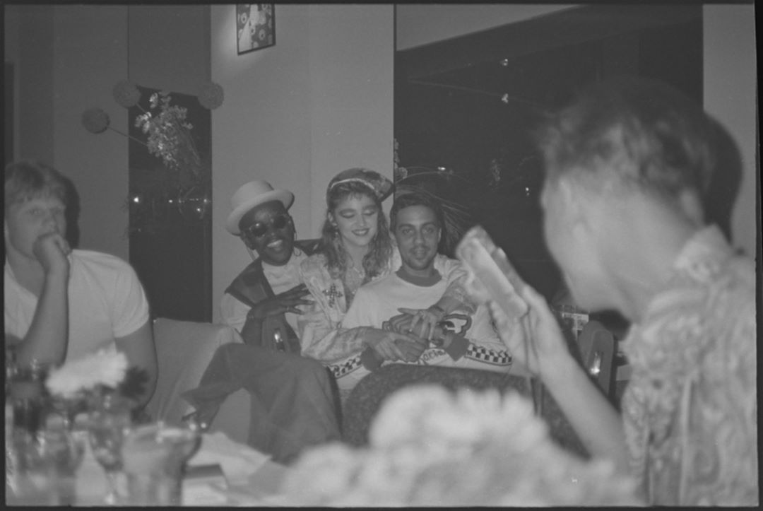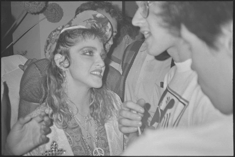 Para junio de 1985, Madonna se encontraba finalizando su gira “The Virgin Tour” recaudando éxitos sin parar. Para ese entonces, ella era una de las celebridades más conocidas y buscadas del momento. A pesar de todo su trabajo con los shows y ensayos, la joven cantante se encontraba el tiempo para divertirse y salir de fiesta con sus amigos. En esta ocación la vemos en el club “Palladium” uno de los lugares de moda y el favorito de Madonna por aquellos años. Aquí vemos una Madonna muy distendida y relajada disfrutando de su éxito junto a otras celebridades como el artista Fab Five Freddy, el artista y amigo íntimo Keith Haring, Jean Michel Basquiat o el fotógrafo Tseng Kwong Chi. Sin embargo, esa noche fue una persona a la que Madonna le dedicó toda su atención: el cantante Marilyn, quien estaba lanzando su disco solista.