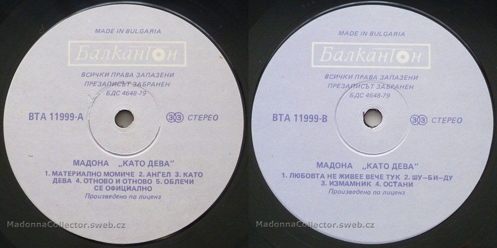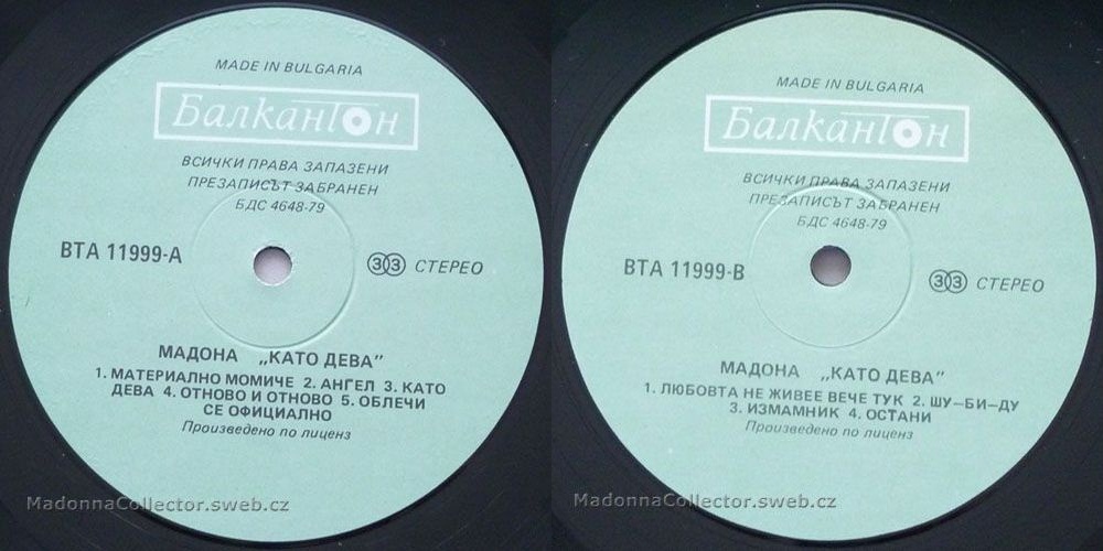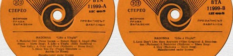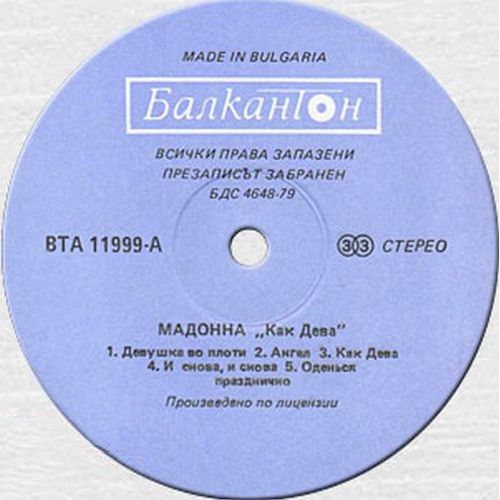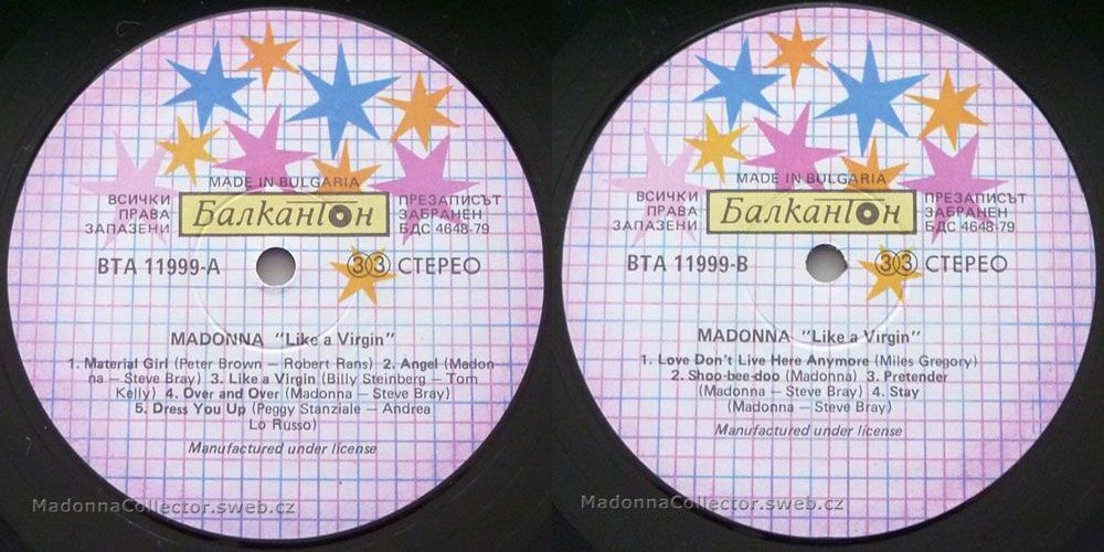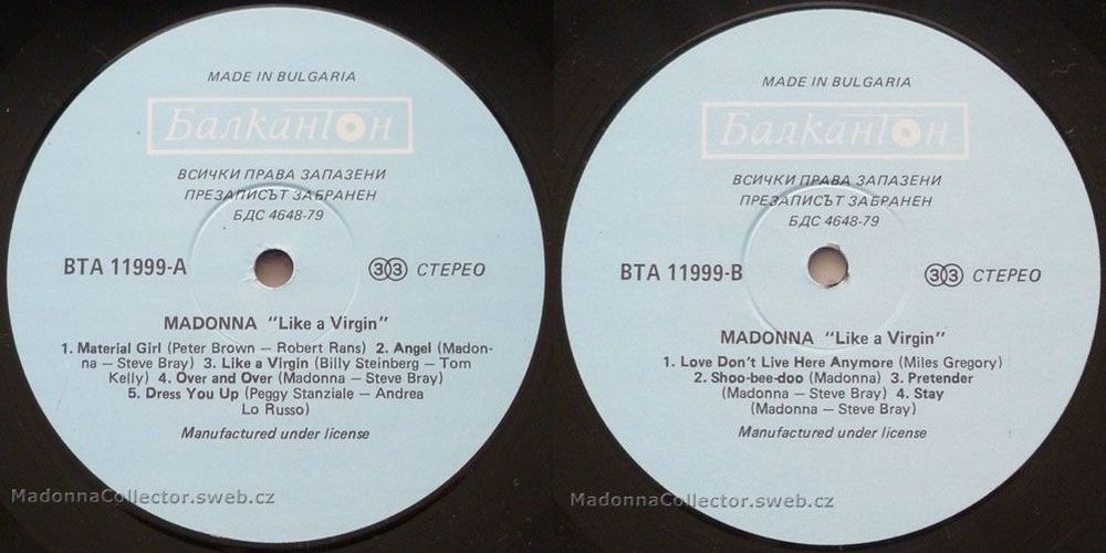 No hay dudas que en esa época había industrias musicales que realizaban muchas de las producciones de Europa Occidental bajo la licencia de sus propietarios, pero nadie controlaba estos productos. En todos estos casos, no se puede encontrar los logos de Warner Bros. o Sire Records o cualquier otra información relacionada con la compañía de Madonna y la propia cantante. Este es el caso de “Kamo Geba” la edición de Bulgaria del disco “Like a Virgin” de 1984 publicado por la discográfica “Balkanton” de dicho país en 1985. La compañía “Balkanton” fue fundada en 1952 y tenía su base en Sofia, fue la única disquera en todo el bloque de los países soviéticos que producía discos y funcionó casi con exclusividad, creando un monopolio de la industria musical por más de cuatro décadas. “Balkanton” manejaba todos los elementos para la realización de discos, desde la grabación de los masters, la impresión de los vinilos y hasta la generación del diseño de las tapas. A partir de los 80s, también comenzó a producir casettes. Siendo la única compañía discográfica en Bulgaria, “Balkanton” acumuló durante casi cuarenta años un vasto catálogo de géneros y artistas que incluían a Michael Jackson, Tina Turner, Abba, Kate Bush, etc. La compañía funcionó hasta 1999 momento en el que es privatizada.