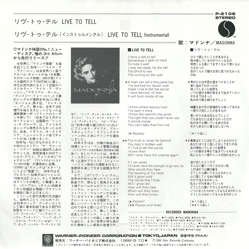 - LADO 01-02 – «Live to Tell» (LP version) 05:49