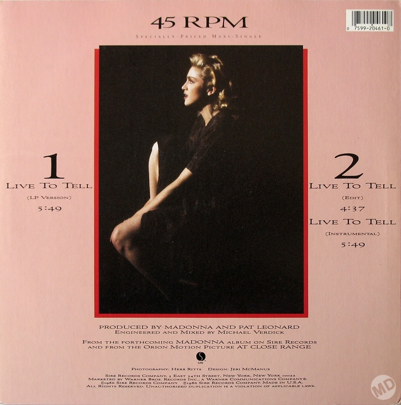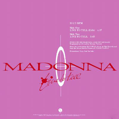 - Luego de que «Live to Tell» se usara en la película de Foley; Madonna propuso lanzarla como single debut de su próximo disco «True Blue». Los ejecutivos de la Sire y la Warner pensaban que aquello sería un fracaso y el fin de la carrera de Madonna. Sin embargo, y como en todas situaciones similares, Madonna se empecinó a que su balada fuera comercializada. “Live to Tell” llegó a convertirse en otro N°1 más para la colección de Madonna.