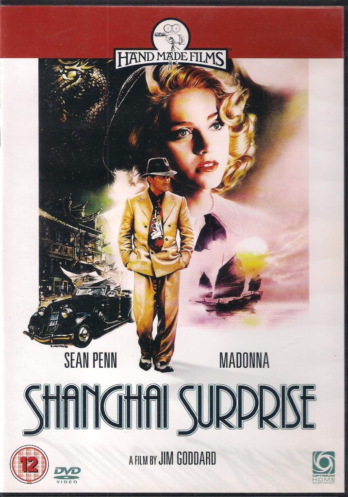 “Shanghai Surprise” es una comedia de aventuras dirigida por Jim Goddard y protagonizada por los flamantes recién casados Sean Penn y Madonna. Estuvo producida por la compañía del ex Beatle George Harrison, “HandMade Films” y distribuida por Metro-Goldwyn-Mayer. Es la segunda gran película que protagonizaría Madonna luego de “Desperately Seeking Susan” y ella particularmente estaba muy entusiasmada con el proyecto ya que tendría al fin la oportunidad de lucirse una película con un libreto y una trama original y encarnar a un personaje totalmente alejado de ella misma. Sin embargo, los conflictos surgieron desde el primer día de rodaje y todo el proyecto se convirtió en un caos. Cuando se estrenó el film, fue una de las películas con menos recaudación del año, siendo el primer gran fracaso en la carrera de Madonna.