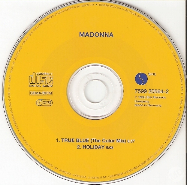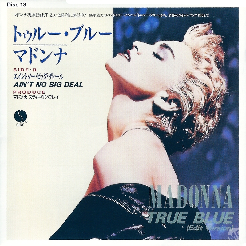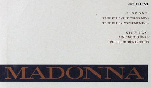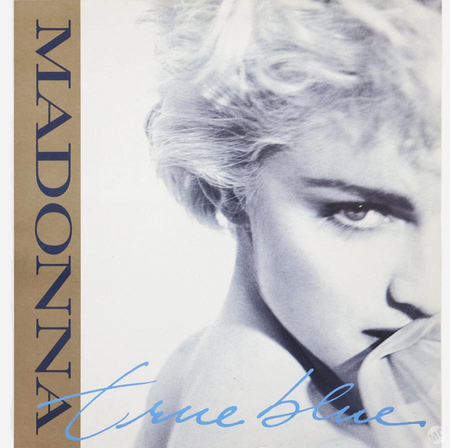 - Con críticas que la posicionaron como una liviana canción de amor con toques retro, “True Blue” alcanzó las primeras posiciones tanto en los rankings de UK como de USA, en donde llegó al puesto N°3. “True Blue” tuvo su relativo éxito en 1986, sobre todo por el impactante video en donde vemos la nueva imagen de Madonna, con el peinado tan característico que la acompañaría durante ese año y el siguiente; además es el tema que da título al disco y es quizás también una de las canciones más alegres y festivas del mismo.