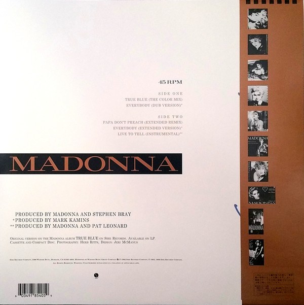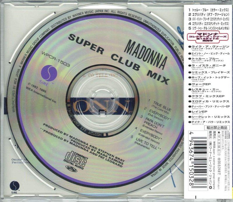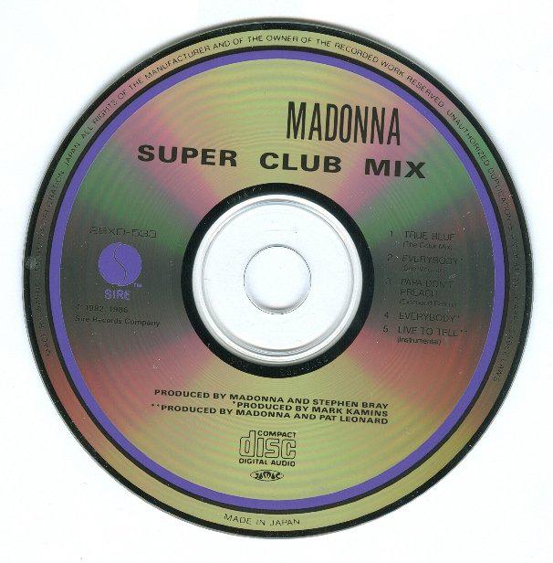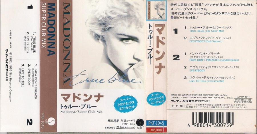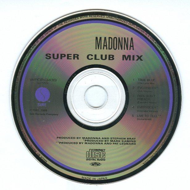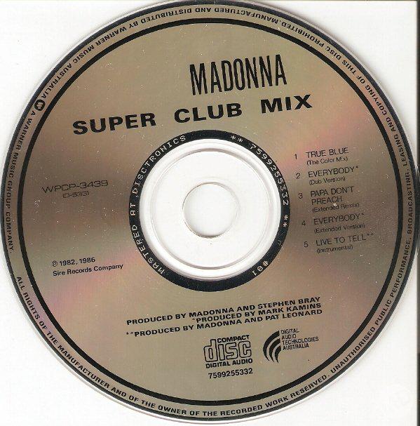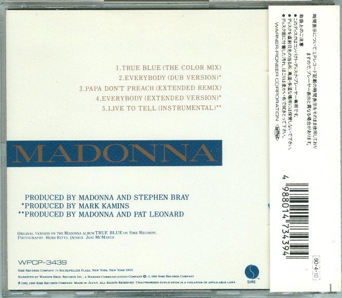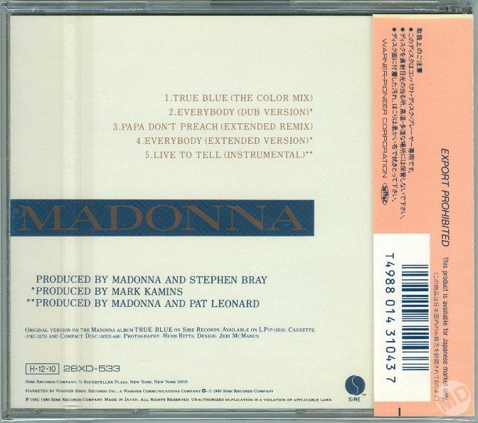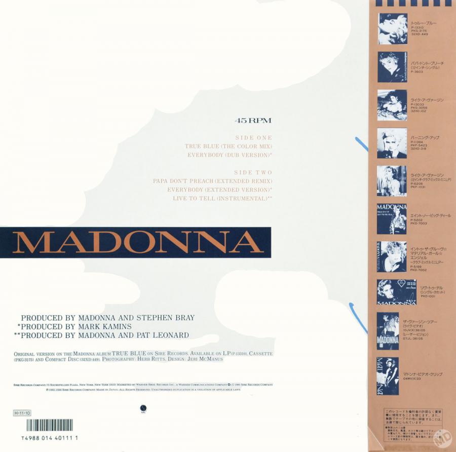 - En noviembre de 1986 se lanzó en Japón un vinilo EP especial que forma parte de una colección de EP de edición japonesa titulado «Super Club Mix», el cual incluía el remix de «True Blue», titulado «The Color Mix», dos versiones de «Everybody», la original y Dub version; la versión extendida de «Papa Don’t Preach» y el instrumental de «Live to Tell». Este EP se lanzó también en formado CD5» tanto en Japón como en Australia.