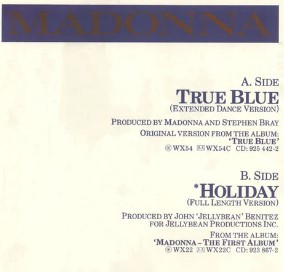 - Como curiosidad, las ediciones de USA se lanzaron incluyendo la canción «Ain’t No Big Deal», una canción de los primeros años de Madonna como compositora junto a Stephen Bray. Recordemos que esta canción había sido propuesta inicialmente como cara B del primer single «Everybody», sin embargo en ese momento quedó descartada. Esta vez, fue reversionada y retocada por Bray para ser incluída en este single. Por otro lado, en UK, se optó por una opción mucho más clásica y fueron a lo seguro, incluyendo la versión original de «Holiday». No se sabe el motivo por el que este single no incluyó como cara B algún otro track del disco «True Blue».