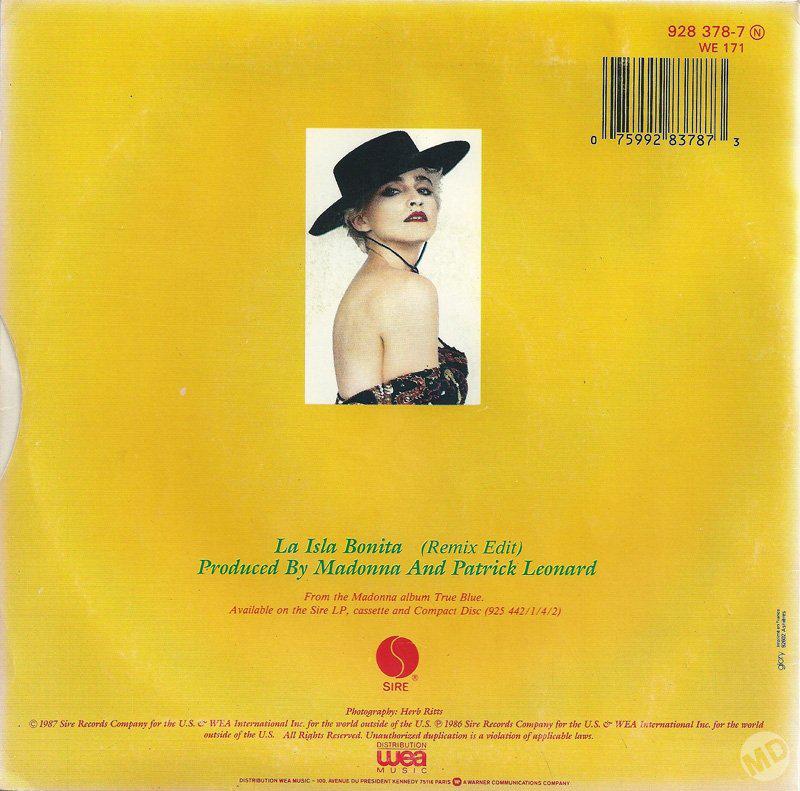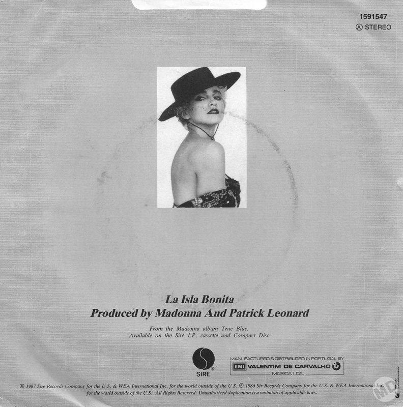 - “La Isla Bonita” es el quinto y último sencillo extraído del LP “True Blue”. Si bien la Warner tenía planes para lanzar “Where’s the Party” más adelante, esto quedó cancelado y “La Isla Bonita” cerró la etapa de los singles del tercer álbum de estudio de Madonna.