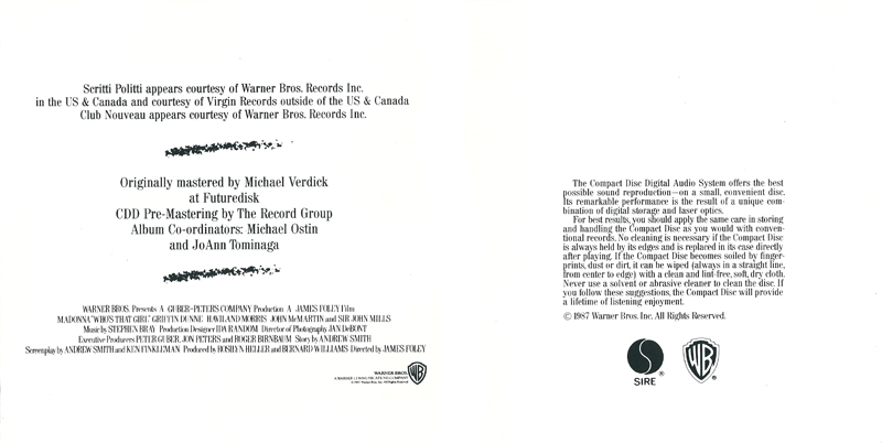 - El disco está incluido dentro de la discografía de Madonna a pesar de ser en realidad una banda sonora y de tener únicamente cuatro canciones de la cantante; el resto eran temas de relleno de bandas y grupos de la Warner que necesitaban algo de promoción.