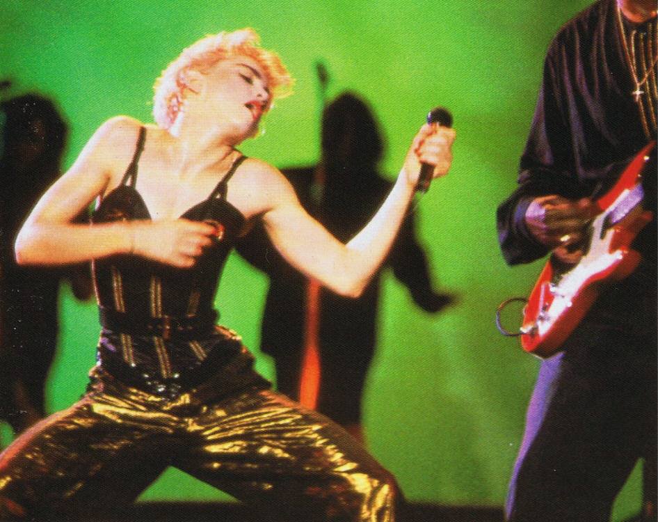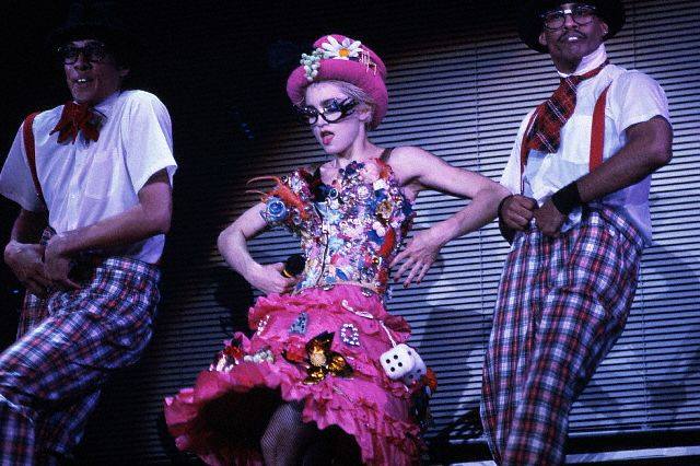 Para «Material Girl», los bailarines Shaba-Doo y Alex Ferreira ingresan al escenario vestidos ridículamente para acompañar el personaje de Madonna quien arroja billetes falsos al público, estos serían los famosos «Madonna money» que también se usaron en la gira previa y se usarían durante «The Blond Ambition Tour» en 1990.
