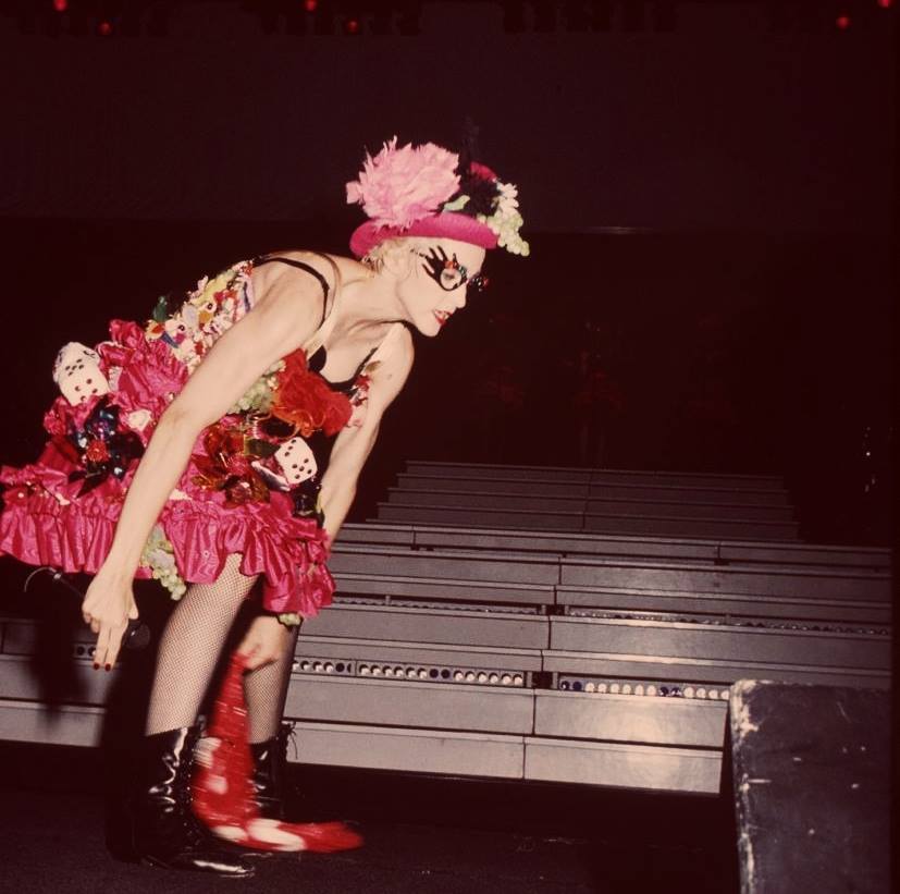 El cuarto segmento del show se presentó como un medley de aproximadamente 11 minutos de duración que incluía tres canciones del disco «Like a Virgin» de 1984: «Dress You Up», «Material Girl» y «Like a Virgin». Luego de finalizar la balada «The Look of Love», una gran cabina telefónica ingresa por la cinta transportadora, en su interior se encontraba Madonna quien, en 45 segundos se cambia de vestuario para el nuevo acto. Luego de la introducción de «Dress You Up», Madonna sale de la cabina vestida con un extravagante vestido rosa inspirado en el personaje de Edna Everage. El vestido consistía en un corset y una gran falda armada compuesto por gran cantidad de elementos de fantasía y cotillón, juguetes, frutas y flores de plástico, dados, resortes, etc., el look se acompañaba de un sombrero haciendo juego y lentes. En varios momentos, Madonna levanta su ridícula falda para mostrar su ropa interior en cuya parte trasera se leía la palabra «Kiss» («beso»).