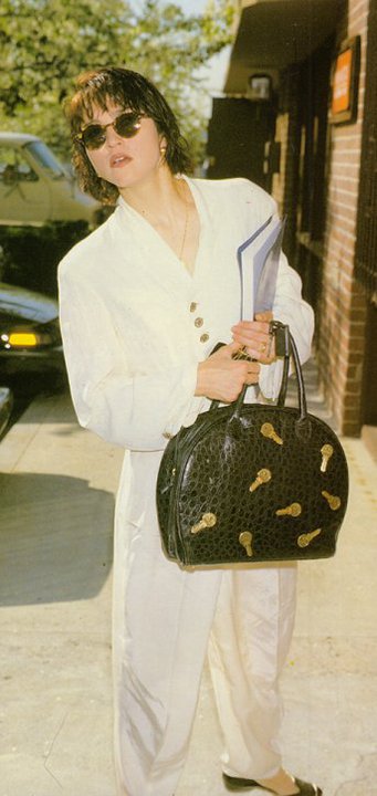 Madonna se vio con este bolso en muchas oportunidades, pero inicialmente desde febrero de 1988 cuando comenzó con los ensayos de la obra «Speed the Plow».