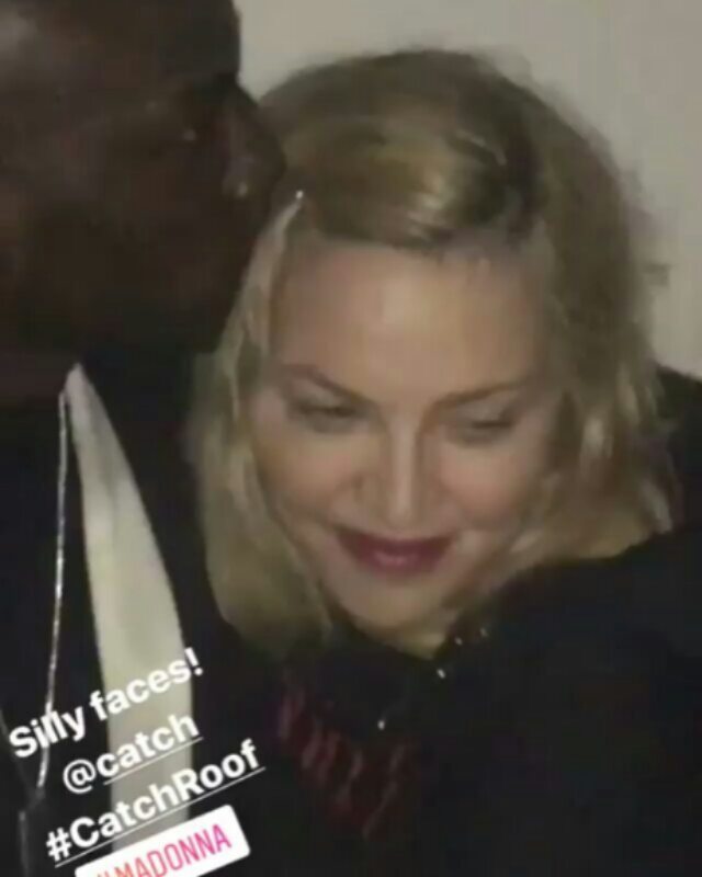 También se la vio conversando muy animadamente con el rapero Jezzy quien subió a su cuenta de Instagram una foto con la reina del pop con el título «Born leyends» («nacidos leyenda»). En un determinado momento, el DJ Tom Macari quiso mostrarse un poco más personal y pasó dos hits de la estrella, «Holiday» y «Everybody» momento en el que Madonna saltó de su silla y comenzó a dar algunos clásicos pasos de baile al ritmo de su primerísima canción.