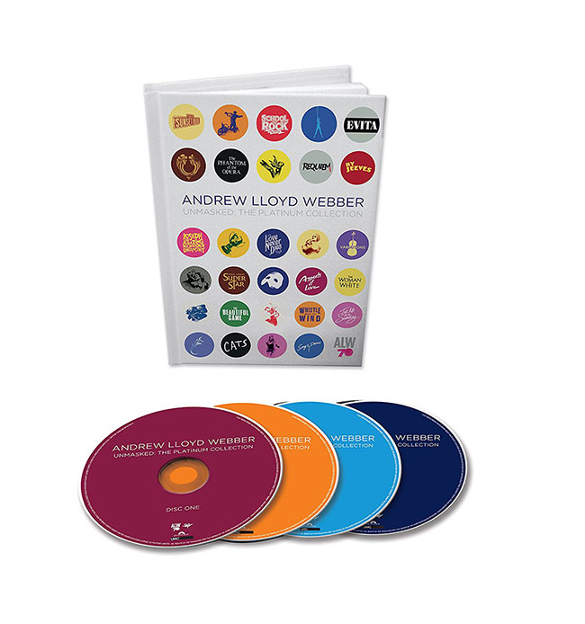 Para conmemorarse el cumpleaños n°70 del legendario Andrew Lloyd Weber se lanzó el 17 de marzo una colección de CDs de música reuniendo los más grandes éxitos de su carrera. “Unmasked: The Platinum Collection” es una nueva colección curada personalmente por el afamado compositor que incluye clásicos desde sus primeros trabajos hasta la actualidad. En los discos podemos disfrutar de temas principales de obras como “Sunset Boulevard”, “Cats”, “Aspects Of Love”, “Joseph and the Amazing Technicolor Dreamcoat”, “Jesus Christ Superstar”, “Starlight Express”, “The Phantom of The Opera”, “School of Rock”, “Love Never Dies” y por supuesto, “Evita” su gran obra musical convertida luego en film por Alan Parker en 1996, protagonizada por Madonna, Jonathan Pryce y Antonio Banderas.