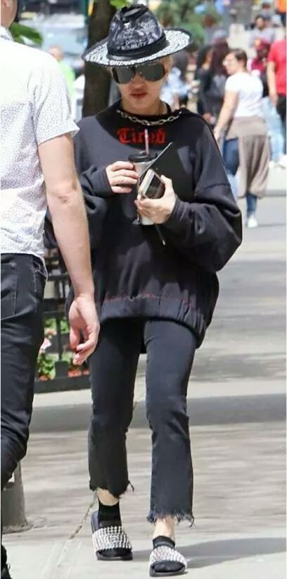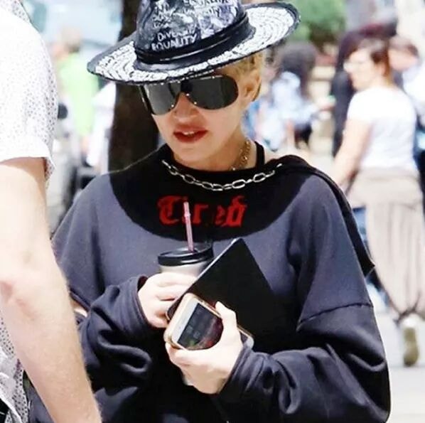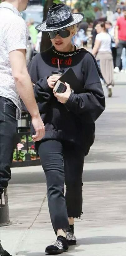 05 de mayo, días previos a la gran aparición de Madonna en la gala del MET, se pudo ver a la cantante caminando sola por las calles de Manhattan. Como podemos ver, Madonna no se quitó su sombrero preferido de Ruslan Baginkiy Hats.