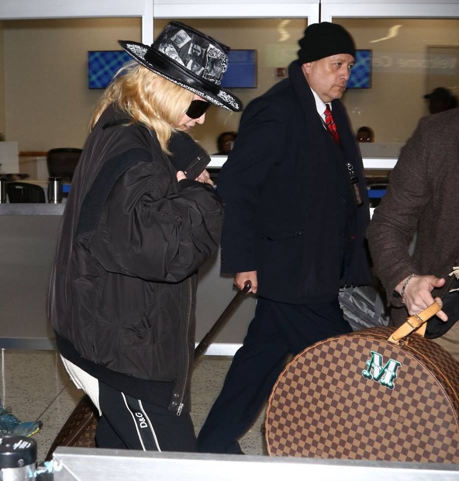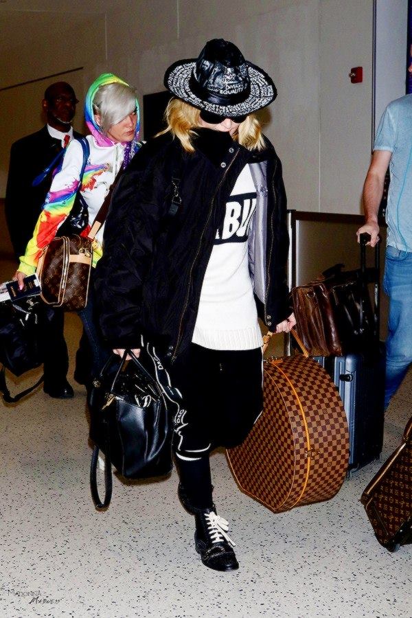 30 de abril, Madonna es fotografiada llegando al aeropuerto JFK de New York desde Lisboa.