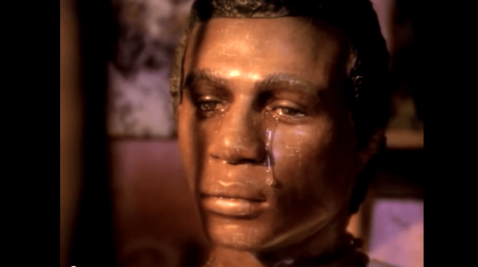Es importante ver el paralelismo que hay en las escenografías de la iglesia al principio del clip y la estación de policía al final. En la iglesia vemos como un Santo negro se encuentra en un altar detrás de una reja, el que es el mismo lugar de la celda en donde está encarcelado injustamente el joven negro. Ahí se unen los dos personajes, el santo y la víctima, interpretados por el mismo actor.