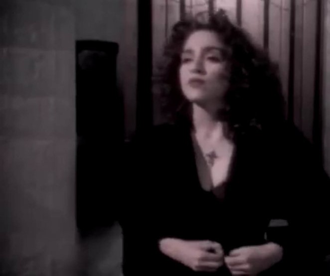 Mientras Madonna tendida en el suelo, se despierta como alguien que recién acaba de hacer el amor, el sugerente vestido ceñido al cuerpo con sus hombros descubiertos pone la marca de sensualidad que le da a toda la escena un toque de lujuria. Hay dos besos en el video clip; el primero con el Santo que al cobrar vida besa a Madonna en la frente con un beso de inocencia y hasta con cierto paternalismo; luego Madonna recostada es besada en la boca por el joven negro, momentos en que se sugiere que están haciendo el amor. Es aquí en donde toda la idea original del amor prohibido interracial entra en juego.