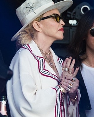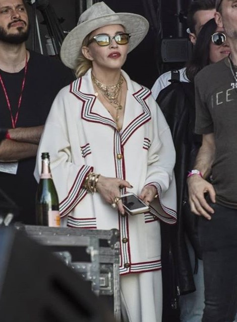 Durante la canción «Open it Up» se la pudo ver cantando y bailando muy complacida mientras que durante el tema “Stir Fry”, Madonna se levantó de su lugar y cruzó la parte trasera del escenario de manera que su presencia fuera vista. La cantante llegó minutos antes de que el trio subiera al escenario en una Range-Rover negra y vestida completamente por Gucci con un traje blanco tipo pijama con bandas rojas y azulas y un sombrero Panamá.