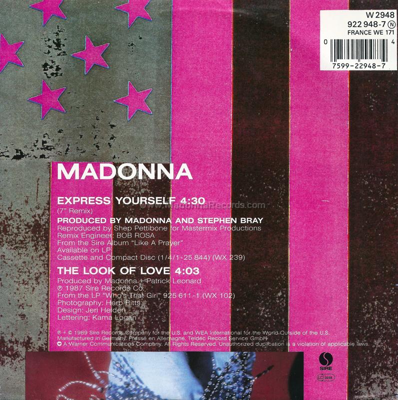 - «Express Yourself» fue el segundo sencillo del disco “Like a Prayer” lanzado el 09 de mayo de 1989.