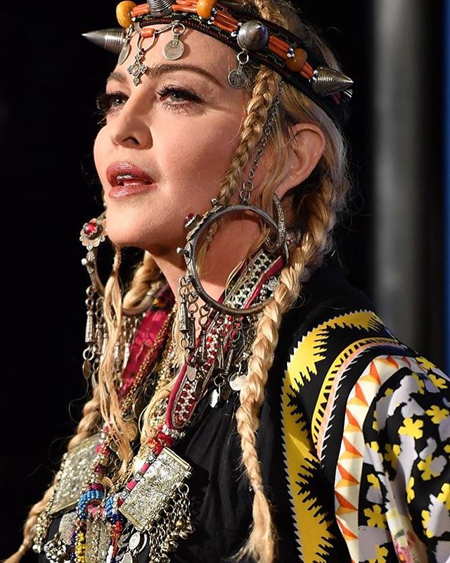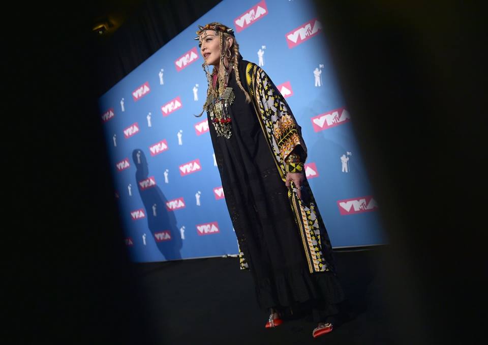 Madonna ha dado que hablar durante su última aparición pública en la entrega de los Premios MTV el 20 de agosto en New York. La estrella se ha mostrado con un look muy particular poniendo en evidencia la gran influencia de Marruecos adquirida durante su último viaje. Madonna se vistió con una gran túnica negra hasta los pies y de mangas largas, con algunos detalles en bordados; lo acompañó con un colorido kimono modelo «Odyssey Printed Kimono» con patrones geométricos típicos del Norte de África en colores negro, amarillo y naranja perteneciente a la colección primavera-verano 2018 de la marca «Temperley London». Sin embargo lo más llamativo fueron sus accesorios gran cantidad de collares, colgantes, brazaletes y sobre todo un tocado con gemas y cuernos de plata en la cabeza. Los críticos de moda se dieron un festín con el atuendo de Madonna diciendo que había sido una de las peores vestidas de la noche y acusándola de apropiación cultural.