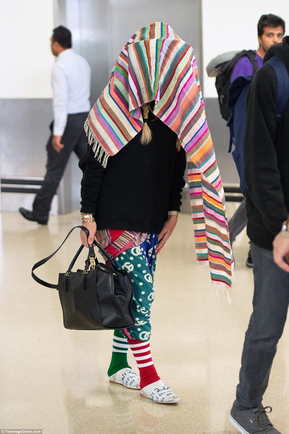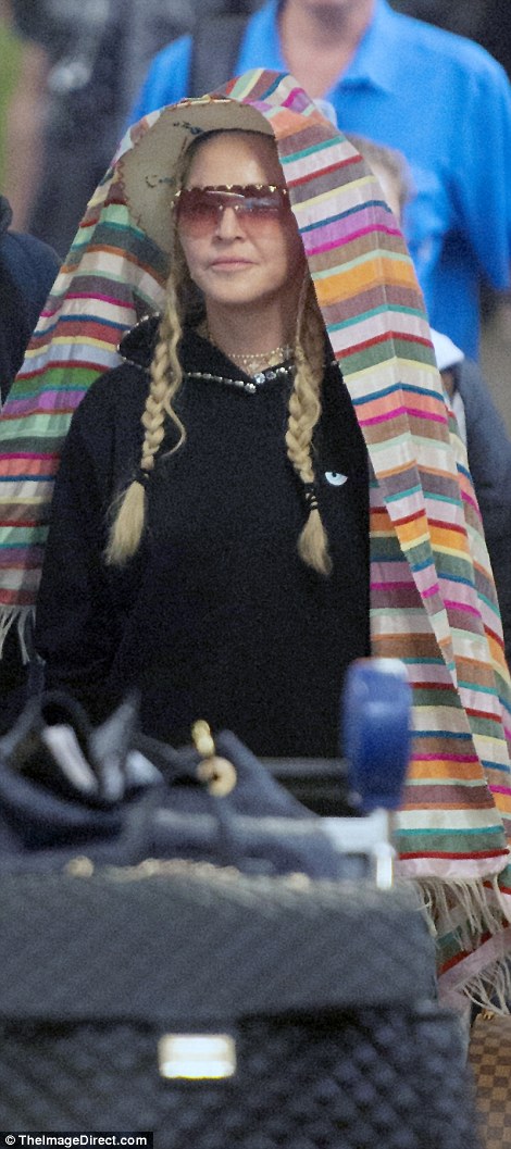 El día lunes 20 de agosto, Madonna fue vista llegando al Aeropuerto Newmark de New Jersey con un look bastante particular: un holgado buzo negro, una babuchas “Dolce & Gabbana” en color verde y azul, medias (una roja y otra verde), pantuflas, sombrero y una manta multicolor (probablemente comprada en Marruecos); además de un gran cargamento de bolsos y maletas. Por momentos, Madonna cubrió su rostro con la manta para evitar ser fotografiada por los paparazzis.