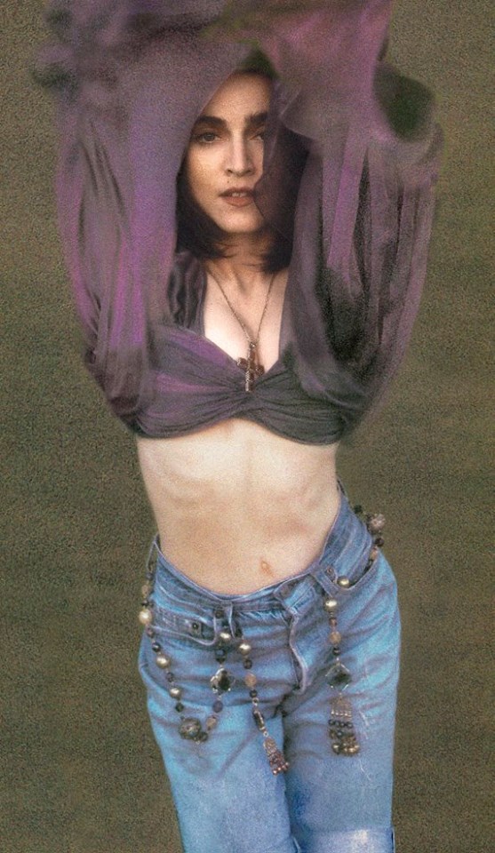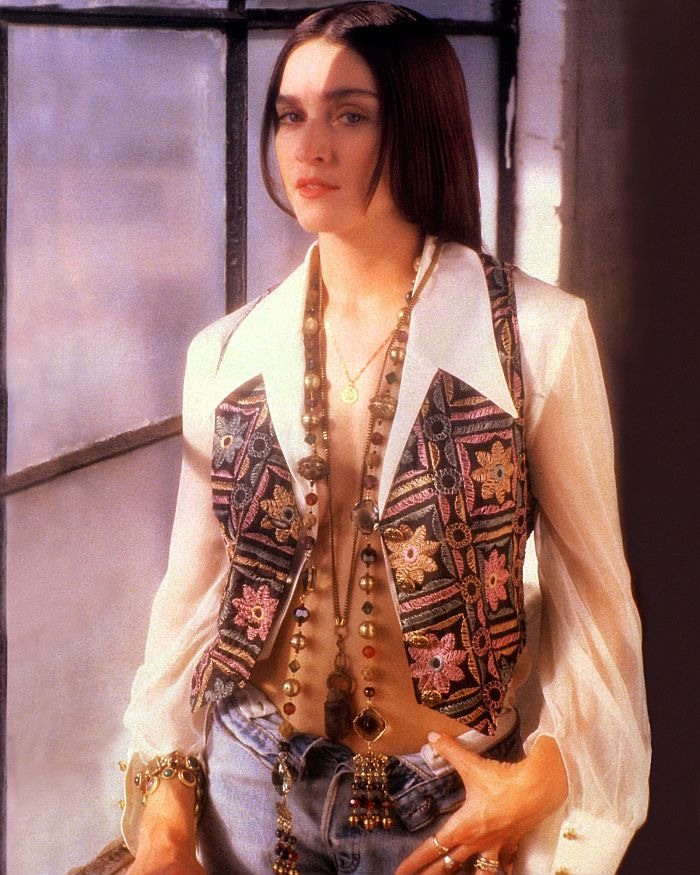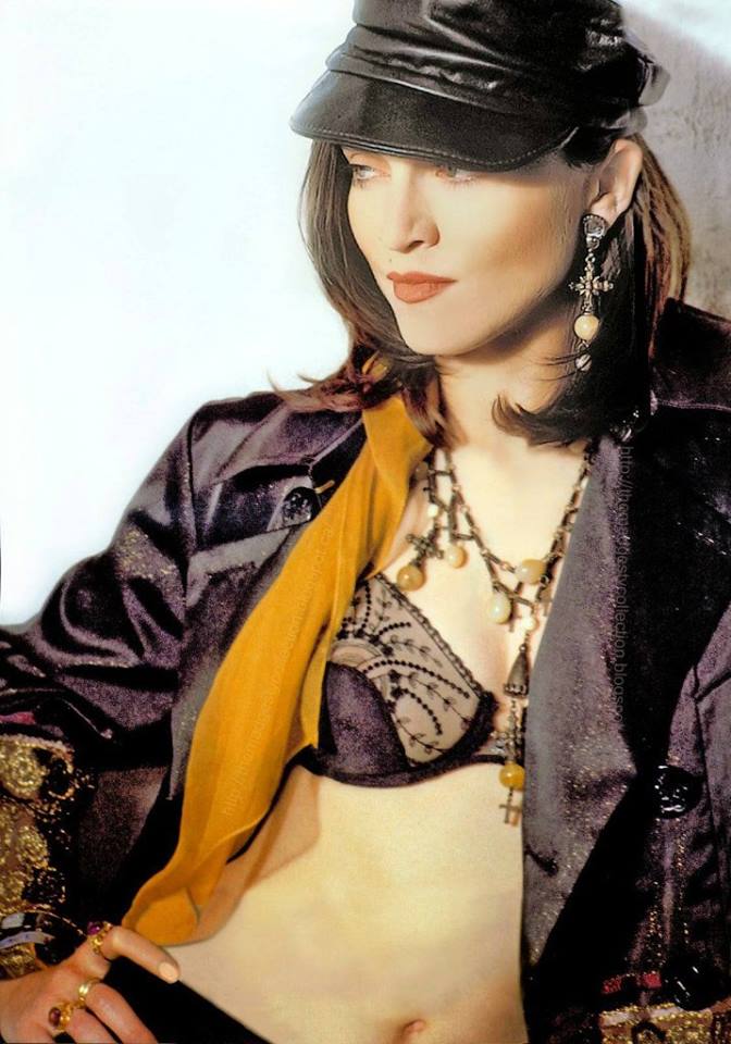 Lo primero que notamos en esta etapa, es el cambio de color de cabello, veníamos de una Madonna platinada y con el cabello muy corto en 1986-1987 para luego cambiar rotundamente en 1988 con un color chocolate oscuro, muy parecido a su color de cabello original. Como ella supo decirlo en alguna entrevista, la «Madonna morena es mucho más terrenal» y ese estilo venía perfecto para la imagen que se quería mostrar en el disco. Una de las primeras apariciones públicas con este nuevo look fue para la tapa de la edición de UK de la revista «Vogue», fotos tomadas también por Herb Ritts, en donde veíamos a Madonna lucir un curioso y llamativo vestido negro transparente de gasa con apliques en lamé dorado en busto, abdomen y mangas. El vestido pertenece a la colección primavera-verano 1989 de Jean-Paul Gaultier y esta ocasión fue la única vez que Madonna usó esta prenda. Completó el look con un pañuelo de seda con bordados y piedras en color carmín y un par de pendientes de metal dorado, pedrería y resina todo perteneciente a la colección de Gaultier.