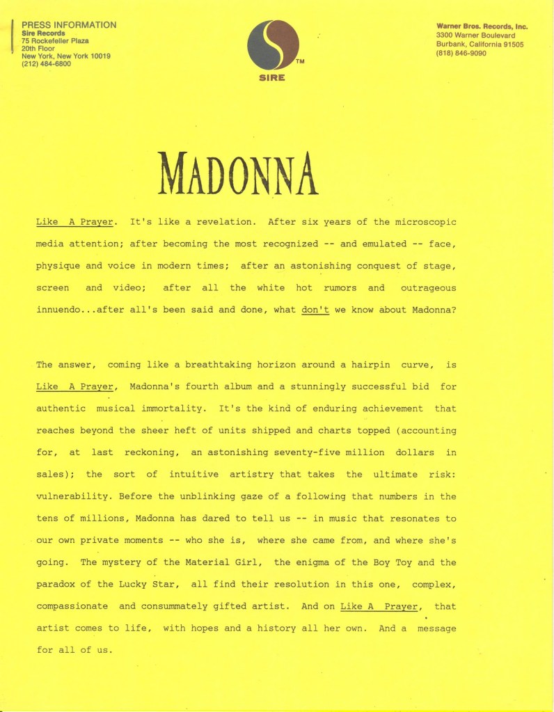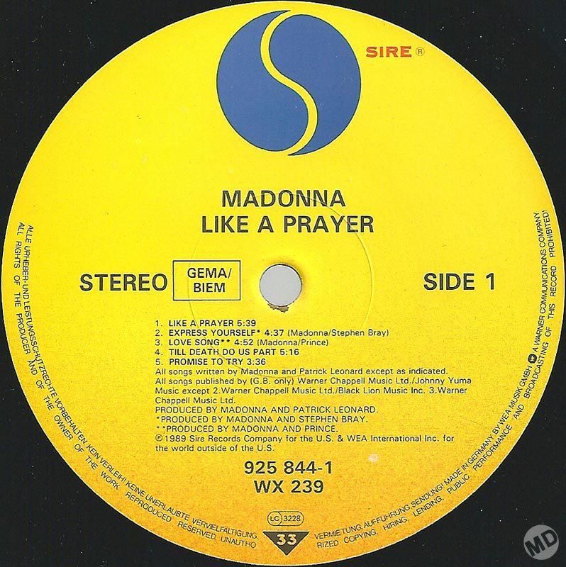 - “Like a Prayer” es el cuarto disco de estudio original después de “True Blue” (1986) y el sexto disco luego de “You Can Dance” (1987), publicado el 21 de marzo de 1989 por Warner Records y Sire.